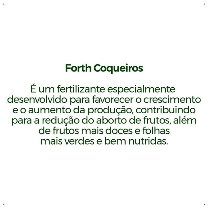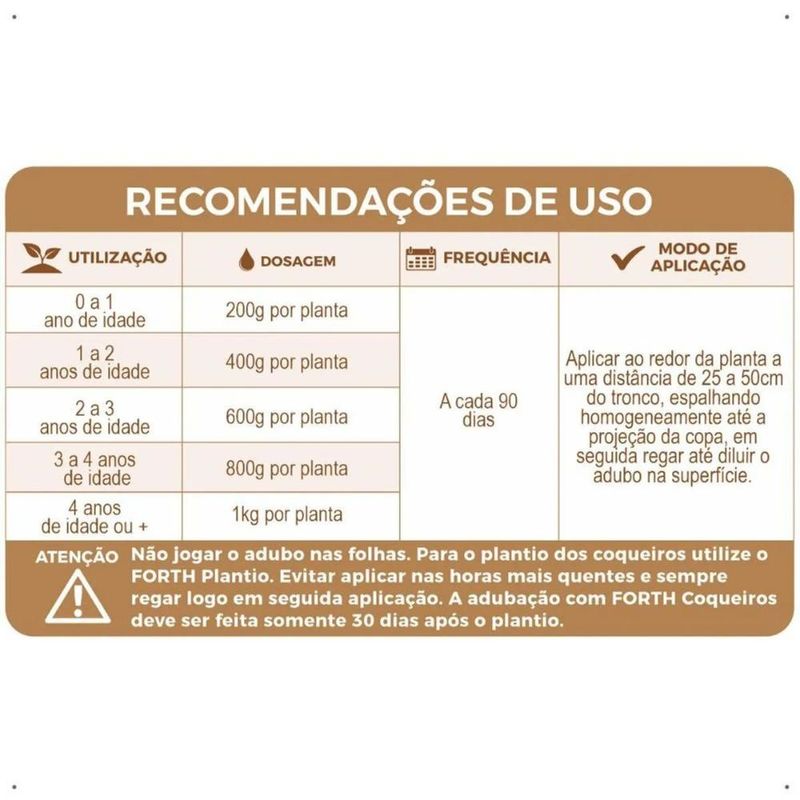 Adubo Coqueiro Forth - 3kg Ah, o encanto dos coqueiros! Se você tem um coqueiro que parece estar guardando seus cocos para uma ocasião especial, o Forth Coqueiros é a resposta para desbloquear todo o potencial do seu amigo verde. Com este adubo, você vai alimentar, deixar as folhas verdinhas e, para alegria de todos, fazer seu coqueiro produzir muito! Imagine esse adubo como um banquete especial para o seu coqueiro. Ele vai garantir que suas folhas estejam exuberantes e cheias de vida, proporcionando um visual de jardim tropical diretamente na sua casa. E para aqueles coqueiros mais novinhos, o Forth Coqueiros ajuda no crescimento, transformando suas mudas em majestosos coqueiros. A melhor parte? Sua paciência será recompensada, e agora vai ter coco para dar e vender! Este adubo é como um despertador para o seu coqueiro, lembrando-o de que é hora de produzir uma abundância de cocos suculentos. Então, se você sempre sonhou em ter um coqueiro produtivo, não espere mais! O Forth Coqueiros vai transformar seu coqueiro em uma fonte generosa de cocos, proporcionando um toque tropical ao seu espaço. Prepare-se para colher e compartilhar a deliciosa recompensa do seu coqueiro revitalizado! Atenção: Não jogar o adubo nas folhas. Para o plantio dos coqueiros utilize o FORTH Plantio. Evitar aplicar nas horas mais quentes e sempre regar logo em seguida aplicação. A adubação com FORTH Coqueiros deve ser feita somente 30 dias após o plantio.