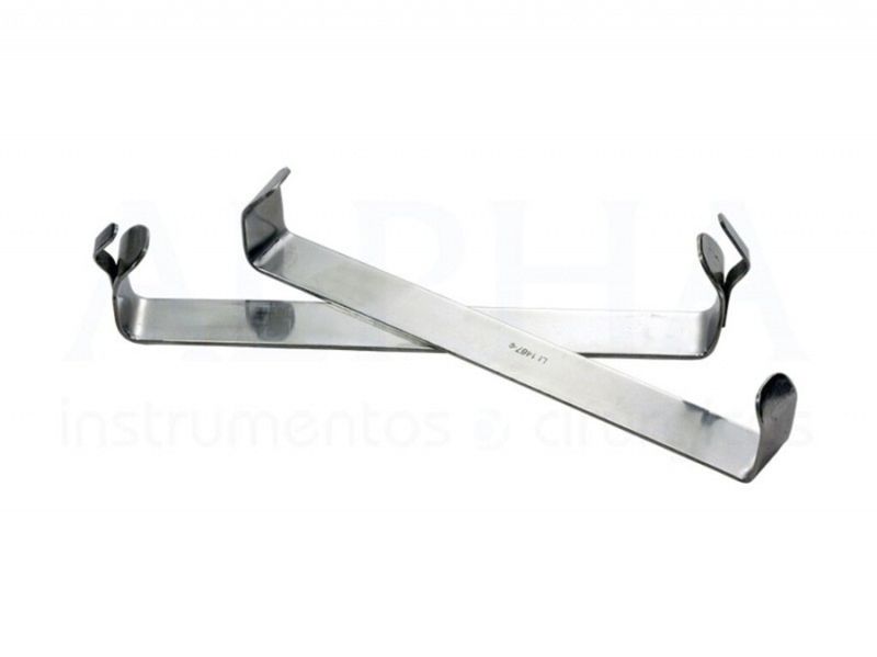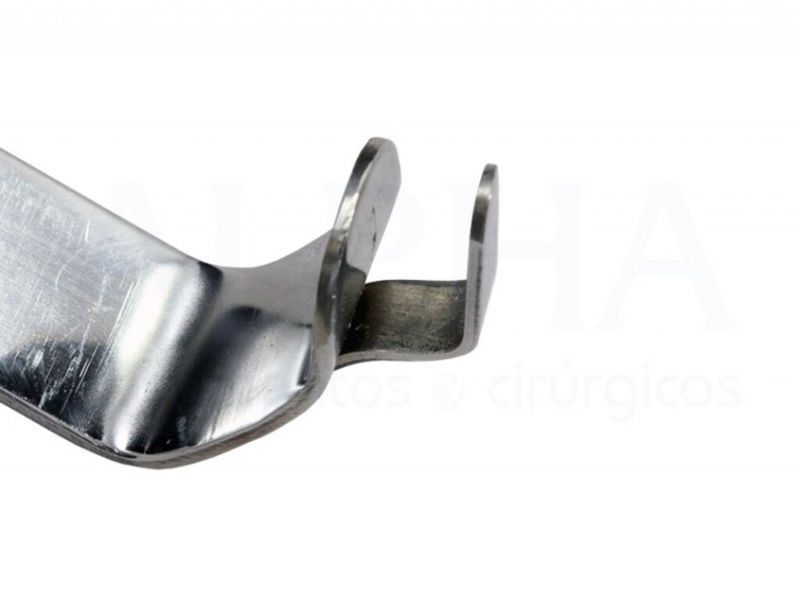 Afastador Farabeuf modificado com garras. Instrumento Cirúrgico não articulado não cortante. Produzido em Aço Inoxidável. Utilizado para afastar o lábio e bochecha durante a cirurgia. Com garra lateral o que permite afastamento do retalho simultaneamente.