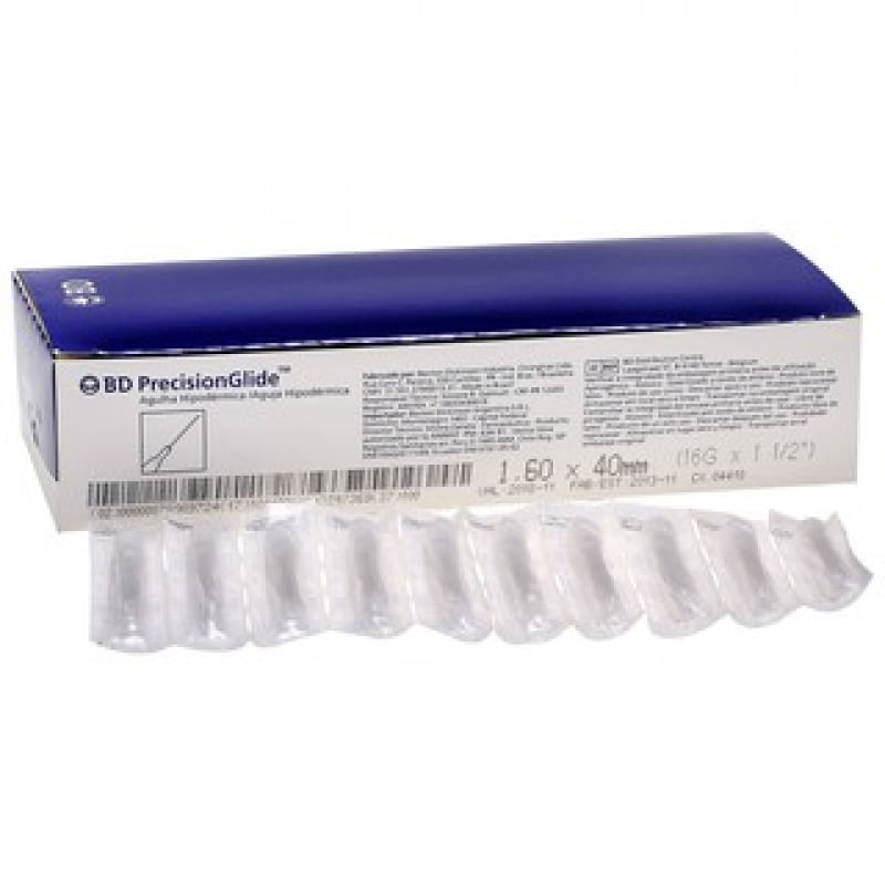 Agulha descartável, corpo de aço inoxidável biselado, canhão em plástico, provida de protetor, esterilizada a óxido de etileno, embalada individualmente.- Cânula siliconada que desliza facilmente, diminuindo a dor do paciente- Bisel trifacetado que torna a aplicação mais fácil e reduz a dor do paciente- Canhão colorido que facilita a identificação visual do calibre da agulha- Protetor plástico que garante total proteção da agulha para um melhor acoplamento à seringa- Código EAN nas embalagens unitárias e nas caixasESPECIFICAÇÕES- Descartável- Estéril- Caixa com 100 unidades