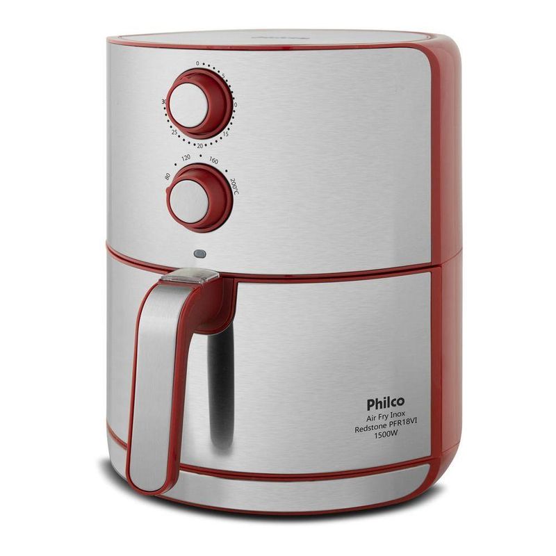 Air Fryer Philco 4,6L Inox 1500W Redstone PFR18VI 220VSe você busca praticidade na cozinha aliada à saúde, você achou! A FAir Fryer Philco Inox Redstone PFR18VI é mais que saudável, ela preparar diversos alimentos sem utilizar óleo, solte sua imaginação e surpreenda nas receitas. Pode cozinhar para toda família, são 4,6L com capacidade de 3,5L no cesto para grandes preparos. E sem se preocupar, pois a função timer de 60 minutos te avisa quando está pronto. E para facilitar a limpeza, ela é antiaderente, com revestimento cerâmico Redstone. Além de ser removível, claro! Principais Características:- Frita com pouquíssimo ou nenhum óleo; - Seletor de temperatura com ajuste de 80 a 200 graus; - Timer mecânico de 60 minutos; - Capacidade do cesto 3,5L - Capacidade da cuba de 4, 6 litros; - Luz indicadora de funcionamento; - Desligamento automático; - Base antiderrapante; - Cesto removível com revestimento antiaderente “Redstone”; - Trava de segurança; - Sistema de proteção contra sobreaquecimento; - Acabamento em inox; - Composição: Metal e Plástico; - Garantia de 1 Ano.Especificações Técnicas:Marca: PhilcoModelo: PFR18VICor: PrataTipo: Sem óleoPotência (W): 1500WFunção timer: SimEstado: NovoTido de controle: AnalógicoCesto antiaderente: SimCapacidade: 4,6LControle de temperatura: SimCesto removível: SimAltura do produto: 33,4 cmLargura do produto: 28,6 cmComprimento do produto: 31,9 cmPeso do produto: 5,03 kgAltura com embalagem: 34 cmLargura com embalagem: 34 cmComprimento com embalagem: 37,5 cmPeso com embalagem: 6 kgGarantia (Dias): 360Observação: Somente faturamos para o nosso consumidor final, ou seja, não faturamos pedidos para CNPJ por este portal de vendas;