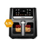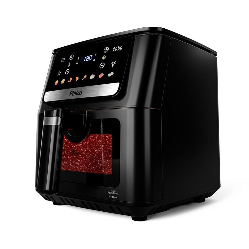 Descubra a praticidade e o sabor que a Air Fryer Philco 6,5L Visor Glass 1700W PAF65A traz para sua cozinha. Com capacidade de 6,5 litros, a Air Fryer PAF65A prepara grandes quantidades de alimentos de uma só vez, ideal para refeições em família. O revestimento cerâmico Redstone evita que os alimentos grudem e facilita a limpeza, enquanto o visor glass permite acompanhar o preparo sem interromper o cozimento. Com potência de 1700W, timer de até 60 minutos e controle de temperatura de 80°C a 200°C, você prepara frituras, assados e grelhados com precisão e agilidade na sua Air Fryer Philco PAF65A. O painel digital oferece 8 funções pré-programadas, e a função favoritos salva suas configurações preferidas. Além disso, a PAF65A conta com sinal LED “turn” que avisa quando é hora de virar os alimentos, e o desligamento automático garante segurança e conveniência. Transforme sua rotina e desfrute de refeições saudáveis e saborosas sem complicações. Air Fryer Philco 6,5L Visor Glass 1700W PAF65A, experimente o prazer de cozinhar com praticidade e eficiência! • Capacidade da cuba (L) 6,5L• Tipo de cesto: Quadrado• Potência: 1700W• Controle de temperatura, temp. máxima (°C): 40°C 200°C• Cuba e fundo removível revestido com antiaderente Redstone• Luz indicadora de funcionamento: Possui ícones luminosos por conta do painel digital• Desligamento automático• Base antiderrapante • Sistema de proteção contra sobreaquecimento • Pode ser levada à lava louças: Cuba e fundo removível• Comprimento do cabo de alimentação: 90cm exposto• Timer 60 minutos• Tipo de acabamento Preto Fosco e Inox• Funções pré-programadas 8 funções pré-programadas para alimentos• Função Programar• Função Favorito: Permite salvar configuração mais utilizada• Alça da Cuba removível.