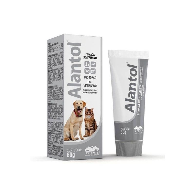 ALANTOL é uma poderosa Pomada cicatrizante, aliada com repelente. Fórmula: Cada 100 g contém: Alantoína………………………………………………………………3,0 g Óxido de Zinco……………………………………………………….3,0 g Veículo q.s.p…………………………………………………………100 g Indicação do produto: Alantol é indicado como cicatrizante, na terapia de lesões cutâneas, feridas acidentais ou cirúrgicas, abcessos, escoriações de decúbito, ulcerações de superfície e queimaduras. Modo de usar: Aplicar diretamente com as mãos ou espátula no local afetado, espalhando suavemente sobre toda a superfície. Efeitos colaterais: Não há registro de efeitos colaterais. Componentes de destaque: Alantoína: promove debridação química de proteínas, que mantém o ferimento livre de secreções purulentas e tecidos mortos, estimulando a epitelização e proliferação celular.