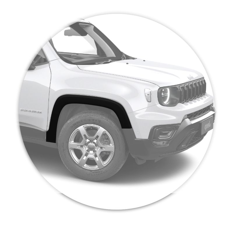 Alargador de Paralamas Renegade 2016 a 2025 Dianteiro Direito Preto - DTS O Alargador de Paralamas foi desenvolvido, para a substituição da peça original danificada, tendo como objetivo proteger o parachoque original e evitar possíveis danos proporcionando um visual com design único. Desenvolvido pela DTS, conhecida nacionalmente pela Fabricação em acessórios automotivos, o alargador proporciona ao seu veículo um visual ainda mais completo e robusto. Produto fabricado em Plástico Rígido na cor Preto Texturizado, com material de alta resistência e durabilidade, de modo que não haja corrosão, ressecamento e desgaste com o tempo, sendo um produto de alta demanda na linha de acessórios automotivos. Vale ressaltar que esta moldura não aceita pintura na cor do veículo! Instalado no para-lamas Dianteiro Direito (Passageiro), preserva a originalidade do veículo, não sendo necessário realização de furos para a fixação do produto. Especificações Técnicas: Aplicação: Dianteiro Direito (Passageiro) Design esportivo e elegante Não acompanha Kit Instalação Produto de alta qualidade Resistente ao Sol e a Chuva Fácil Instalação Encaixe perfeito Plastico Rigido Cor Preto Texturizado Não aceita pintura automotiva Tabela de Aplicação: Jeep Renegade 2016 Renegade 2017 Renegade 2018 Renegade 2019 Renegade 2020 Renegade 2021 Renegade 2022 Renegade 2023 Renegade 2024 Renegade 2025 Compatível com todas as versões 4x2 e 4x4.