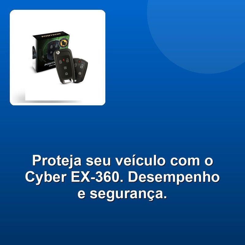 Alarme Automotivo Positron Cyber Ex-360Descubra a máxima proteção e conveniência para o seu veículo com o Alarme Automotivo Positron Cyber EX-360 Blade. Projetado com tecnologia de ponta e compatibilidade universal, este alarme é ideal para todos os veículos 12 volts disponíveis no mercado brasileiro, garantindo segurança sem complicações. Sua exclusiva Tecnologia ASIC (Application Specific Integrated Circuit) eleva o módulo a um novo patamar de resistência contra interferências eletromagnéticas, evitando disparos falsos e proporcionando um desempenho confiável em qualquer situação.Com funcionalidades inteligentes, o Cyber EX-360 Blade facilita o seu dia a dia. Ao desligar o carro e ativar o alarme, o sistema automaticamente desliga o som, garantindo tranquilidade ao deixar o veículo. Para maior flexibilidade, o sensor de ultrassom pode ser temporariamente cancelado via controle remoto, ideal para situações em que não se deseja detectar movimentos dentro do carro. Além disso, sua luz de aproximação acende as setas do veículo por 10 segundos com apenas dois toques no botão desliga do controle remoto, tornando a identificação do veículo mais prática em locais escuros ou movimentados.E não para por aí: com a função pânico, basta pressionar o botão liga do controle remoto por 5 segundos para disparar o alarme e chamar atenção em situações de emergência. Caso você tenha dificuldades em localizar seu carro no estacionamento, a funcionalidade de pisca-setas permite que o veículo pisque suas luzes ao pressionar o botão auxiliar do controle remoto por 3 segundos, mesmo com o alarme ativado. Para maior segurança, a função Autolock realiza o travamento automático das portas em até 5 segundos após ligar a ignição e as destrava ao desligá-la, oferecendo praticidade e proteção em todos os momentos.Descubra a máxima proteção e conveniência para o seu veículo com o Alarme Automotivo Positron Cyber EX-360 Blade. Projetado com tecnologia de ponta e compatibilidade universal, este alarme é ideal para todos os veículos 12 volts disponíveis no mercado brasileiro, garantindo segurança sem complicações. Sua exclusiva Tecnologia ASIC (Application Specific Integrated Circuit) eleva o módulo a um novo patamar de resistência contra interferências eletromagnéticas, evitando disparos falsos e proporcionando um desempenho confiável em qualquer situação.Com funcionalidades inteligentes, o Cyber EX-360 Blade facilita o seu dia a dia. Ao desligar o carro e ativar o alarme, o sistema automaticamente desliga o som, garantindo tranquilidade ao deixar o veículo. Para maior flexibilidade, o sensor de ultrassom pode ser temporariamente cancelado via controle remoto, ideal para situações em que não se deseja detectar movimentos dentro do carro. Além disso, sua luz de aproximação acende as setas do veículo por 10 segundos com apenas dois toques no botão desliga do controle remoto, tornando a identificação do veículo mais prática em locais escuros ou movimentados.E não para por aí: com a função pânico, basta pressionar o botão liga do controle remoto por 5 segundos para disparar o alarme e chamar atenção em situações de emergência. Caso você tenha dificuldades em localizar seu carro no estacionamento, a funcionalidade de pisca-setas permite que o veículo pisque suas luzes ao pressionar o botão auxiliar do controle remoto por 3 segundos, mesmo com o alarme ativado. Para maior segurança, a função Autolock realiza o travamento automático das portas em até 5 segundos após ligar a ignição e as destrava ao desligá-la, oferecendo praticidade e proteção em todos os momentos.