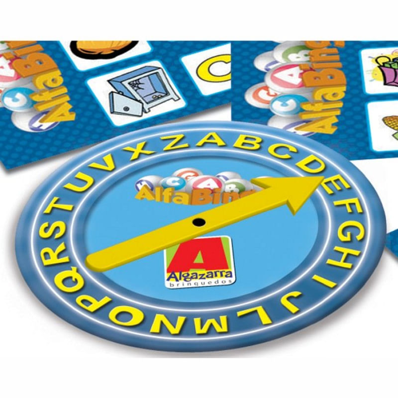 Alfabingo - Bingo de Letras e Figuras - Algazarra É um divertido jogo de bingo com letras e figuras que permite à criança aprender a soletrar, brincando. Excelente para reforçar o aprendizado da ortografia. Jogadores: de 2 a 12 participantes. Ref.: 303396. Material: cartão, papelão, e.v.a. Conteúdo da embalagem: 12 tabuleiros ilustrados, 180 fichas em e.v.a, 1 roleta. Medidas do produto: (C x A x L) 35 x 22 x 4 cm. Medidas da embalagem: (C x A x L) 35 x 22 x 4 cm. Certificação: CE-BRI/BRICS 00032-14 NM300/2002. Idade: a partir de 6 anos. Peso aproximado do produto: 0,305 gramas. Garantia: 3 meses (somente para defeitos de fabricação). Observe atentamente a idade recomendada para o brinquedo. Pode conter partes pequenas que podem ser engolidas e perigosas. A Algazarra Brinquedos conquistou o mercado e ampliou a linha de produtos, se associando a diversas marcas de personagens infantis. Desenvolvem brinquedos que educam. divertem e geram novas prospecções comerciais para nossos clientes.