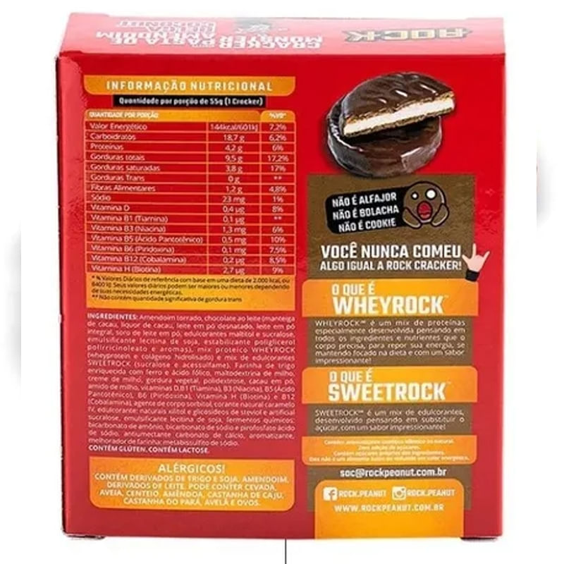 CHEGOU!!!Você está sendo apresentado ao nossoCRACKER MONSTER ROCK CAIXA COM 12 UNIDADES.O Cracker Monster ROCK é um saboroso e delicioso cracker, coberto com chocolate e recheado com a Pasta de Amendoim Branco ROCK, tudo isso ZERO açúcar, com proteína WheyRock, ótimo valor nutricional e sabor totalmente insano.Você está preparado para o nosso CRACKER MONSTER ROCK?