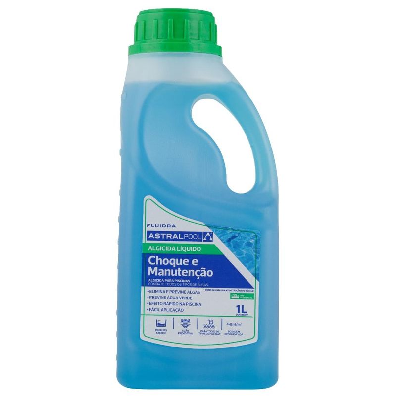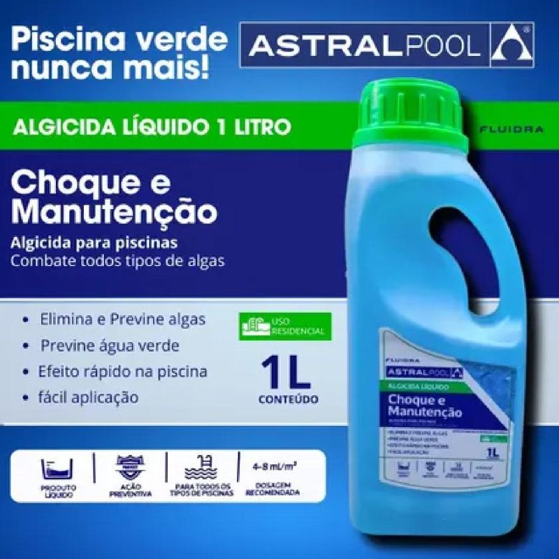 CARACTERISTICAS DO ALGICIDA:USO: Para todos os tipos de piscinasPRINCIPIO ATIVO: Poliquaternario de amonio (10%p/p).EMBALAGEM: Galao de 1 litroVALIDADE: 24 mesesBENEFICIOS:- Choque e manutencao- Combate, elimina e previne todos os tipos de algas- Previne agua verde- Efeito rapido na piscina- Facil aplicacaoGarantia do vendedor: 30 dias