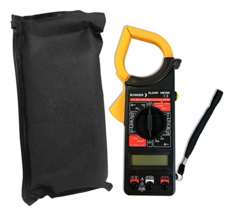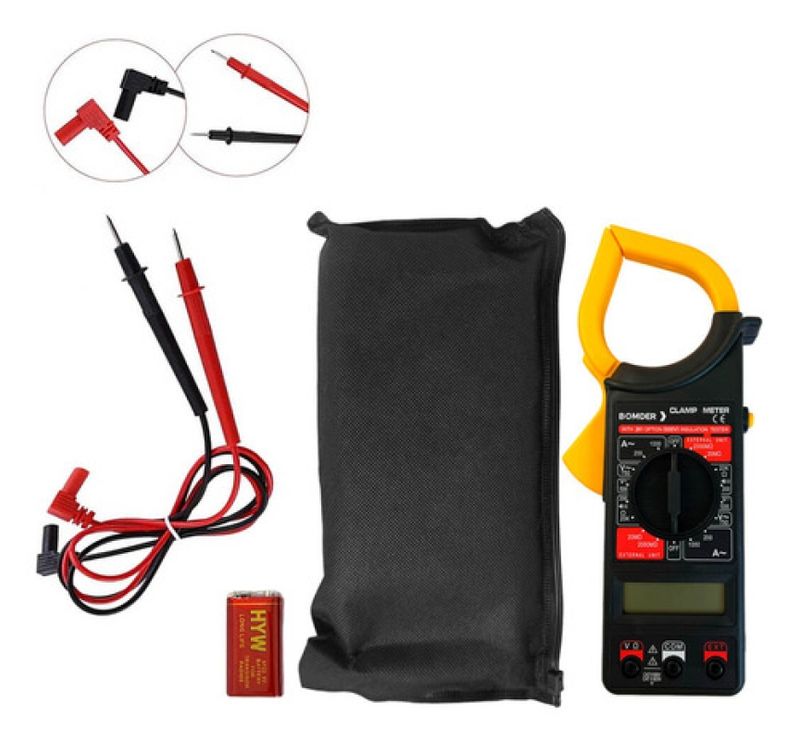 Descrição:O Alicate Amperímetro é uma ferramenta prática e precisa para medições elétricas em ambientes residenciais, comerciais e industriais. Projetado para oferecer eficiência, conta com desligamento automático, botão de retenção de dados e botão multifunção, garantindo facilidade de uso e economia de energia. Com uma ampla abertura de pinça de até 50mm, permite medições em cabos de variados tamanhos com segurança. Possui alimentação por bateria de 9V (inclusa), o que oferece mobilidade durante o uso. Ideal para eletricistas, técnicos e profissionais da área, o aparelho realiza medições de tensão alternada até 750V, corrente alternada até 1000A, frequência até 60Hz e tensão contínua até 100V. Compacto e leve, com apenas 331g, acompanha bolsa para armazenamento e ponta de prova, sendo uma solução completa para medições rápidas e confiáveis.Informações Técnicas:Desligamento AutomáticoBotão de Retenção de DadosBotão MultifunçãoAbertura da Pinça: 50mmAlimentação: 1 Bateria 9V (inclusa)Tensão Máxima CA: 750VCorrente Máxima CA: 1000AFrequência Máxima: 60HzTensão Máxima CC: 100VItens Inclusos:1x Alicate Amperímetro1x Bateria 9v1x Ponta de Prova1x Bolsa de armazenamento