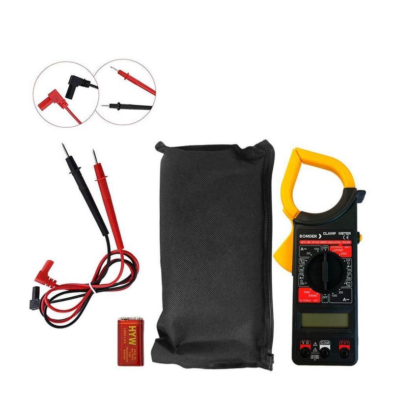 Alicate Amperímetro Digital Com Retenção De Dado 60hz BomderO Alicate Amperímetro oferece uma série de recursos para medições elétricas precisas e eficientes. Com desligamento automático para economia de energia, botão de retenção de dados e botão multifunção para facilidade de uso, é uma ferramenta prática e versátil. Possui uma ampla abertura máxima da pinça de 50mm, permitindo medições em cabos de diferentes tamanhos. Alimentado por uma bateria de 9V (incluída), oferece mobilidade e conveniência. Suas capacidades de medição incluem tensão máxima CA de 750V, corrente máxima CA de 1000A, frequência máxima de 60Hz, tensão máxima CC de 100V e corrente máxima CC de 1000A. Com um peso de 331g, é leve e fácil de transportar, tornando-o ideal para uma variedade de aplicações elétricas.Informações Técnicas: Alicate Amperímetro Digital Desligamento Automático Botão de Retenção de Dados Botão Multifunção Abertura máxima da pinça 50mm Alimentação à bateria (Incluso Bateria 9v) Tensão máxima CA: 750V Corrente máxima CA: 1000A Frequência máxima: 60 Hz Tensão máxima CC: 100V Corrente máxima CC: 1000A Peso: 331gItens Inclusos: 1x Alicate Amperímetro 1x Bateria 9v 1x Ponta de Prova 1x Bolsa de armazenamento