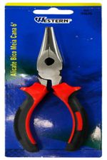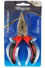 "ALICATE DE BICO MEIA CANA RETO PRETO E VERMELHO 6"" - Contém: 1 Alicate: 5,7 x 1,7 x 16,5cm (CxLxA) - Dimensões da Embalagem: 8 x 2 x 21cm (CxLxA) - Quantidade Inner: 12 Peças - Dimensões Inner: 21 x 8 x 23cm (CxLxA) - Quantidade Master: 60 Peças - Dimensões Master: 45 x 24 x 26,5cm (CxLxA) - Material: Aço Carbono e PVC (Policloreto de vinil) - Cor: Preto e vermelho - Tipo de Embalagem: Blister - Marca: Western - Origem: China - Características: • 6"""" (15cm) • Cabo com textura antiderrapante. • Bico reto e fino. - Indicação: • Para cortes de fios, arames macios, aperto de objetos e manuseio de terminas. - Cuidados • Para reduzir o risco de lesões, sempre use adequadamente equipamentos de proteção individual (óculos de proteção, luvas, botas, etc...) necessário ao trabalho. • Não utilize em aparelhos energizados, ferramenta não isolada. • Use o tipo e tamanho correto de ferramenta para cada tipo de trabalho. • Armazene em local limpo e seco longe de umidade. • Guarde em local seguro. • Manter fora do alcance das crianças. • Guarde estas instruções para futuras consultas. - Sac Fornecedor: • Sac: 0800 607 1322 • E-mail: posvendas@etilux.com.br • Site: www.etilux.com.br - Garantia: • Em condições normais de uso, este produto tem garantia de 90 dias contra defeitos de material e fabricação, mediante apresentação da nota fiscal de compra. Má conservação, manuseio inadequado, quedas ou quaisquer outras avarias produzidas pelo uso incorreto, a garantia oferecida perde a validade."