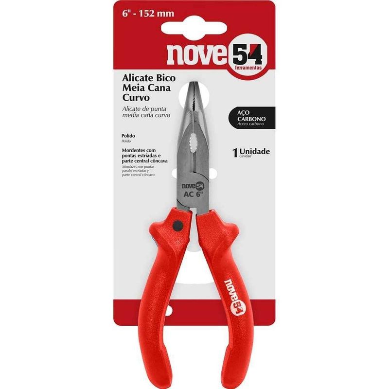 Alicate Bico Meia Cana Curvo 6, Em Aço Carbono Polido, Nove54Alicate Bico Meia Cana Curvo 6, em aço Carbono Polido, Nove54 -Conteúdo da embalagem: 1 Alicate.Aplicação: Indicado para o manuseio de terminais, fios e cabos elétricos (não energizados) em locais de difícil acesso.Destaques: Possui função corte, mordentes com pontas estriadas e parte central côncava, além de acabamento polido.Referência: 3662006200Garantia - E (CDC): Garantia legal: 90 diasModelo: Meia cana curvoMaterial do corpo do alicate: Aço carbonoAcabamento: PolidoTipo do cabo do alicate.: Sem isolaçãoMassa aproximada (peso): 0,183 kgComprimento total: 6 (152 mm)Destaques Comercial: Possui função corte, mordentes estriados, parte central côncava e acabamento polido.Aplicação Comercial: Indicado para manusear terminais, fios e cabos elétricos não energizados em locais de difícil acesso.Características Gerais do Produto:Garantia: - 3 Meses