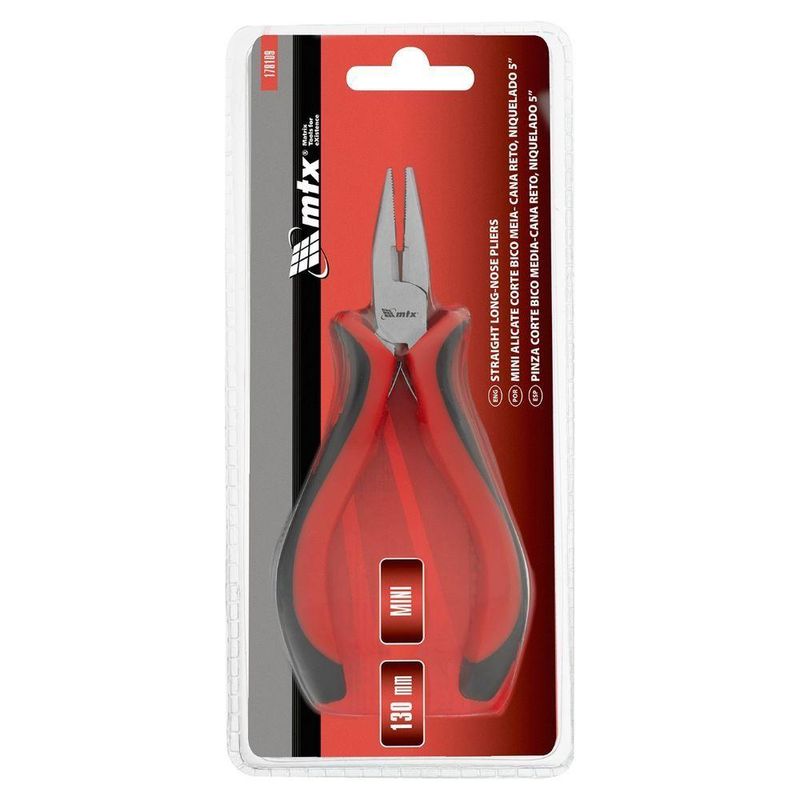 Alicate Bico Meia Cana Reto 130mm Niqelado MtxAlicate de Bico Meia Cana Reto MTX: Precisão e Durabilidade para Seus ProjetosO Alicate de Bico Meia Cana Reto MTX 178109 é a ferramenta ideal para profissionais e entusiastas do 'faça você mesmo' que buscam precisão e confiabilidade em seus trabalhos. Com 130mm de comprimento, este alicate é perfeito para montagens, desmontagens e reparos, especialmente em eletrodomésticos e trabalhos com peças pequenas, fios e cabos. Sua auto-liberação facilita o manuseio com apenas uma mão, aumentando a eficiência e permitindo que você se concentre na tarefa. As mandíbulas em aço 45 garantem força e durabilidade, com dureza de 40 HRC para fixação e 46 HRC para corte, resistindo ao desgaste e proporcionando um desempenho consistente. O acabamento niquelado protege contra a corrosão, prolongando a vida útil da ferramenta, mesmo em ambientes adversos. As alças ergonômicas de dois componentes com inserções antiderrapantes oferecem conforto e segurança, reduzindo a fadiga durante o uso prolongado e garantindo uma aderência firme e precisa. Especificações Material das Mandíbulas: Aço 45 Material do Cabo: Bicomponentes Comprimento: 130 mm Itens Inclusos Alicate de Bico Meia Cana Reto MTX 178109 Perguntas Frequentes (FAQ) Pergunta: Qual a dureza das mandíbulas?Resposta: As mandíbulas de fixação possuem dureza de aproximadamente 40 HRC, enquanto as bordas de corte atingem cerca de 46 HRC. Pergunta: Este alicate é resistente à corrosão?Resposta: Sim, o acabamento niquelado protege o alicate contra a corrosão, aumentando sua durabilidade. Pergunta: Qual o tipo de cabo deste alicate?Resposta: O cabo é bicomponente com inserções antiderrapantes para maior conforto e segurança. Pergunta: Qual a garantia do produto?Resposta: Garantia legal: 90 dias Produto: Alicate | Tipo de Produto: Alicate