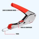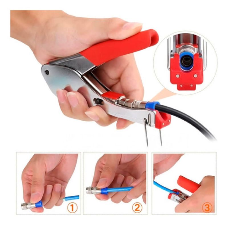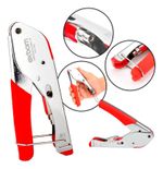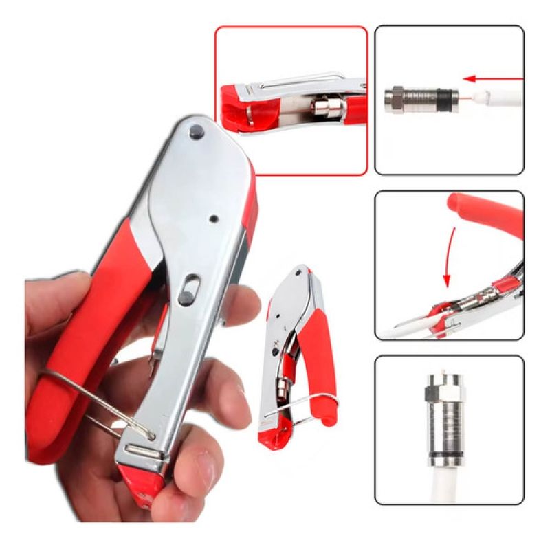 Descrição:O Alicate de Compressão para Conector Coaxial RG59 RG6 é a ferramenta ideal para quem busca precisão e eficiência na instalação de cabos de antenas e conexões de TV a cabo. Projetado para crimpar conectores RG6 e RG59, evita mau contato e garante conexões seguras e estáveis, melhorando o desempenho dos sistemas de transmissão. Fabricado em aço de alta resistência, oferece durabilidade e robustez para uso contínuo. Sua empunhadura emborrachada proporciona um manuseio confortável e firme, evitando deslizamentos durante o uso. Conta ainda com mola interna de pressão, facilitando o manuseio e reduzindo o esforço do operador.Destaques do Produto:Construção robusta, em aço de alta resistência para maior durabilidadeCabo emborrachado, proporcionando conforto e firmeza no usoCompatível com conectores RG6 e RG59, ideal para TV a cabo, antenas e sistemas de vídeoFácil de usar, com cravas para encaixe preciso do cabo, garantindo compressão eficienteEvita mau contato, assegurando conexões confiáveis e estáveisInformações Técnicas:Material: Aço de alta resistênciaEmpunhadura: Revestida em borracha para melhor aderênciaCompatibilidade: Conectores RG6 e RG59Uso indicado: TV a cabo, antenas e sistemas de vídeoMola interna de pressão, facilitando o manuseioItens Inclusos:1x Alicate de Compressão para Conector Coaxial RG59 RG6