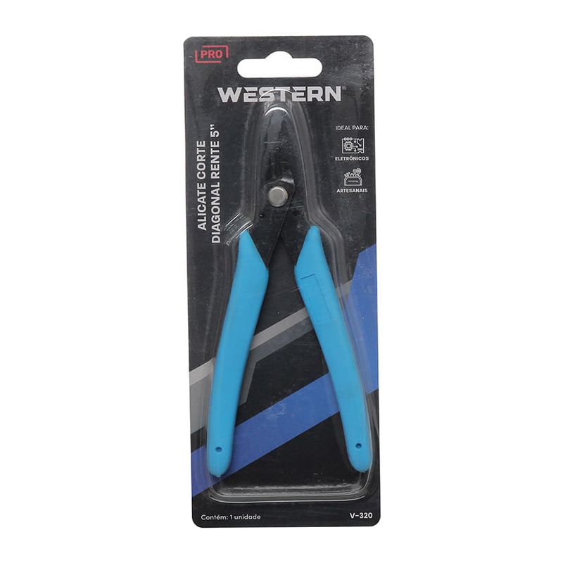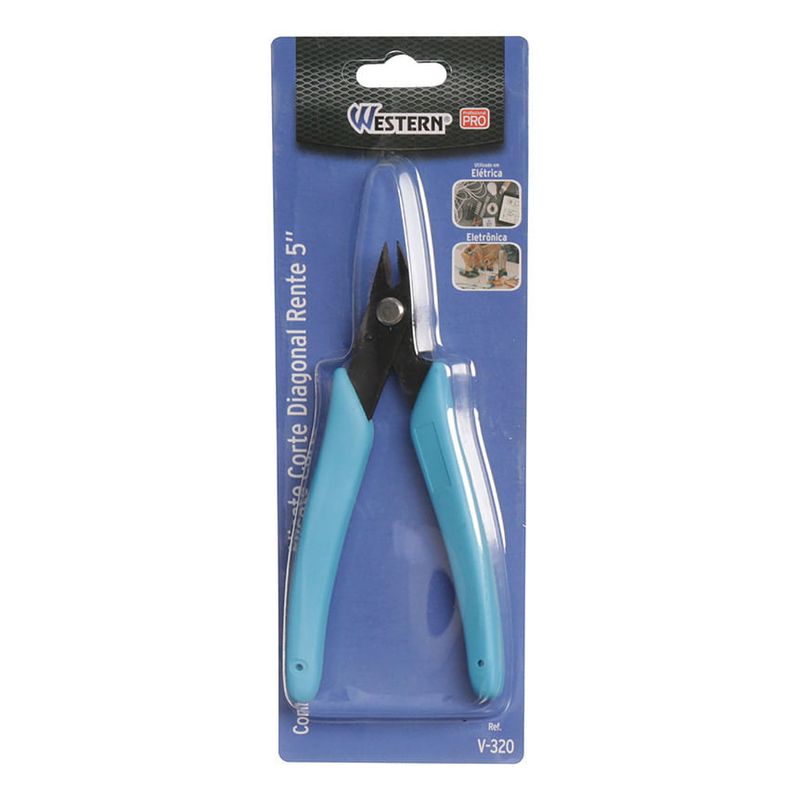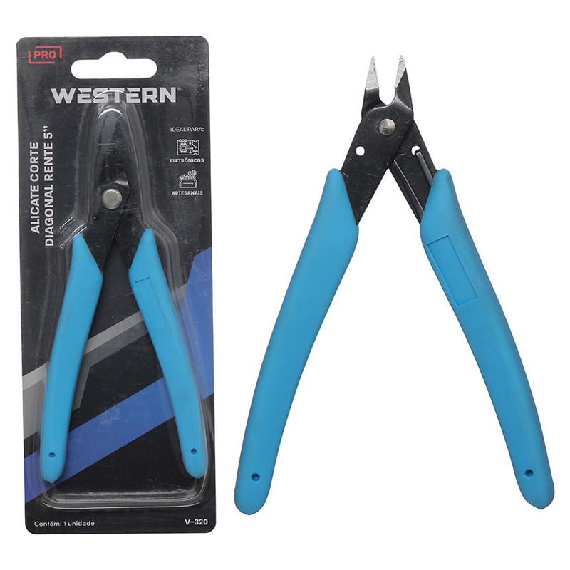 "ALICATE DE CORTE DIAGONAL RENTE AZUL 5"" - Dimensões da Peça: 12,7 x 8,5 x 1cm - Dimensões da Embalagem: 7,5 x 1,5 x 19cm - Quantidade Inner: 30 Peças - Dimensões Inner: 21 x 18 x 17cm - Quantidade Master: 120 Peças - Dimensões Master: 36 x 24 x 37cm - Material: Aço Inoxidável e Borracha - Cor: • Cabo: Azul • Lâmina: Preta - Tipo de Embalagem: Blister - Marca: Western - Origem: China - Espessura da Lâmina: 1,8mm - Contém: 1 unidade - Características: • Tamanho 5"" (12,7cm) • O Alicate Corte Diagonal Rente da Western é fabricado em aço inox. • Ideal para trabalho elétricos, eletrônicos e artesanais. • Tem um sistema de pressão no cabo, que torna o manuseio mais confortável e prático. - Cuidados: • Contém item(s) cortantes e perfurantes. • Evite quedas e pancadas para não danificar o produto. • Use a ferramenta correta para sua aplicação. • Não force a ferramenta. A ferramenta correta fará o trabalho melhor e mais seguro se utilizada para aquilo que foi projetada. • Armazene em local limpo e seco, longe de umidade. • Manter fora do alcance das crianças. - Perigos: Cuidado ao manusear, contém item(s) cortantes e perfurantes, Cuidado durante o manuseio do produto para evitar acidentes, Evite quedas e pancadas para não danificar o produto - - Advertência/Atenção: • Esse produto não é um brinquedo. • Manter fora do alcance das crianças. - Atenção: • Trabalhe seguro. • Use óculos de proteção. - Sac Fornecedor: • Sac: 0800 607 1322 • Email: posvendas@etilux.com.br • Site: www.etilux.com.br - Garantia: • Em condições normais de uso, este produto tem garantia de 90 dias contra defeitos de material e fabricação, mediante apresentação da nota fiscal de compra. Má conservação, manuseio inadequado, quedas ou quaisquer outras avarias produzidas pelo uso incorreto, a garantia oferecida perde a validade."