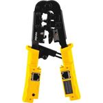 Alicate Crimpador 4 Em 1, Para Cabos De Rede E Dados, Ac 410 Vonder OstenvonderAlicate Crimpador 4 em 1, Para Cabos de Rede e Dados, AC 410 Vonder OstenVonder -Conteúdo da embalagem: 1 Alicate crimpador para cabo de rede. Acompanha: 3 pilhas LR44.Aplicação: Indicado para desencapar, cortar, crimpar e testar cabos de rede lógica e rede de telefonia dos tipos UTP, STP, FTP e SFTP. Utilizar em terminais RJ 45 (8 pinos), RJ 12 (6 pinos) e RJ 11 (4 pinos). Para a função teste, os LEDs de 1 a 8 verificam a continuidade dos fios, e o LED G' testa a blindagem (shield) nos cabos STP, FTP e SFTP.Destaques: Este equipamento reúne versatilidade e inovação: pode ser utilizado em diferentes terminais e, na função de teste, conta com LEDs que sinalizam a ordem correta de crimpagem dos fios e ainda indicam a continuidade do sinal. Tecnologia confiável para agilizar o trabalho com precisão e segurança.Garantia - E (CDC): Garantia legal: 90 diasReferência: 3686004001Capacidade do alicate crimpador: RJ 45/8 pinos, RJ 12/6 pinos e RJ 11/4 pinosTipo do cabo do alicate.: Cabo plastificadoTipo de compressão: ManualMassa aproximada (peso): 0,37 kgMaterial do corpo do alicate: AçoComprimento do alicate crimpador: 200 mmTipo de terminal: RJ 45, RJ 12 e RJ 11Modelo: AC 410Destaques Comercial: Equipamento versátil com LEDs que indicam crimpagem e continuidade, garantindo precisão e segurança.Aplicação Comercial: Ferramenta para desencapar, cortar, crimpar e testar cabos UTP, STP, FTP e SFTP em conectores RJ45, RJ12 e RJ11, com LEDs que verificam continuidade e blindagem.Alimentação / tipo: 3 Pilhas LR44 (acompanham o produto)Características Gerais do Produto:Garantia: - 3 Meses