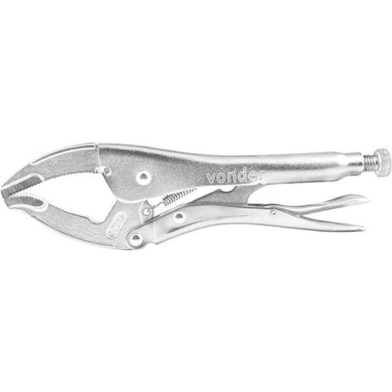 Alicate De Pressão 10" Crv Curvo Longo Plus - Vonder Conteúdo Embalagem: 1 Alicate de pressão Destaques e diferenciais: Possui mordente em aço cromo vanádio, proporcionando maior resistência e durabilidade Aplicações e dicas de uso: Indicado para segurar, fixar, prender, travar, apertar e soltar diversos perfis de materiais Características Técnicas: Material do corpo do alicate: Aço carbono Acabamento do alicate: Niquelado Comprimento total do alicate: 10 - 254 mm Produto: Alicate