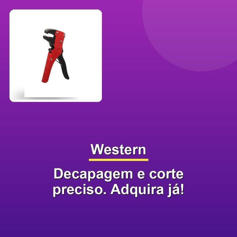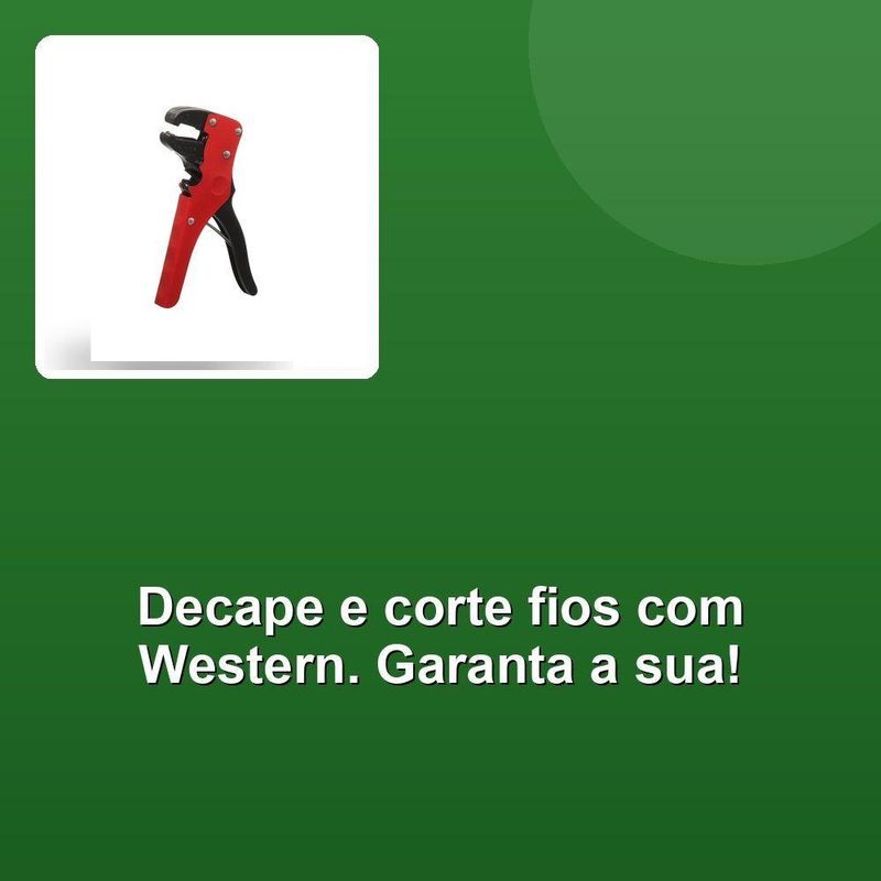 Alicate Decapador Cortador Fios WesternO Alicate Decapador e Cortador de Fios Western é a ferramenta ideal para quem busca praticidade, eficiência e qualidade no trabalho com fios e cabos. Desenvolvido para atender às necessidades de profissionais e entusiastas, este alicate combina funcionalidade e durabilidade, garantindo resultados precisos e seguros. Com capacidade para descascar e cortar fios de 0,5mm a 6mm e ajuste automático que permite trabalhar em cabos chatos de até 8mm, ele é um item indispensável para quem valoriza agilidade e perfeição em cada projeto.Sua tecnologia de ajuste automático facilita o manuseio e assegura que os fios sejam descascados de forma correta, sem danos às suas estruturas. Além disso, o design ergonômico e prático torna o uso ainda mais confortável, permitindo que você execute tarefas repetitivas com menos esforço. Fabricado com materiais de alta qualidade, como aço carbono e plástico ABS, o alicate apresenta resistência e durabilidade, sendo uma ferramenta confiável para o dia a dia.Este produto é especialmente indicado para cortar e descascar fios com diâmetros entre 0,5mm e 2,5mm, oferecendo precisão e eficiência em cada uso. Porém, é importante destacar que ele não deve ser utilizado para cortar cabos de aço carbono. Com dimensões compactas de 17 x 9,2 x 2cm, o alicate é fácil de armazenar e transportar, sendo perfeito para uso em diferentes ambientes de trabalho. Sua embalagem tipo blister protege o produto e facilita a visualização, garantindo que você receba uma ferramenta em perfeito estado.Com acabamento nas cores preto e vermelho, o Alicate Decapador e Cortador de Fios Western combina estilo e funcionalidade. Produzido pela renomada marca Western, reconhecida por sua qualidade e inovação, este alicate é uma escolha segura e confiável para quem busca excelência em ferramentas. Seja para projetos profissionais ou domésticos, ele oferece a solução ideal para facilitar seus trabalhos com fios e cabos.O Alicate Decapador e Cortador de Fios Western é a ferramenta ideal para quem busca praticidade, eficiência e qualidade no trabalho com fios e cabos. Desenvolvido para atender às necessidades de profissionais e entusiastas, este alicate combina funcionalidade e durabilidade, garantindo resultados precisos e seguros. Com capacidade para descascar e cortar fios de 0,5mm a 6mm e ajuste automático que permite trabalhar em cabos chatos de até 8mm, ele é um item indispensável para quem valoriza agilidade e perfeição em cada projeto.Sua tecnologia de ajuste automático facilita o manuseio e assegura que os fios sejam descascados de forma correta, sem danos às suas estruturas. Além disso, o design ergonômico e prático torna o uso ainda mais confortável, permitindo que você execute tarefas repetitivas com menos esforço. Fabricado com materiais de alta qualidade, como aço carbono e plástico ABS, o alicate apresenta resistência e durabilidade, sendo uma ferramenta confiável para o dia a dia.Este produto é especialmente indicado para cortar e descascar fios com diâmetros entre 0,5mm e 2,5mm, oferecendo precisão e eficiência em cada uso. Porém, é importante destacar que ele não deve ser utilizado para cortar cabos de aço carbono. Com dimensões compactas de 17 x 9,2 x 2cm, o alicate é fácil de armazenar e transportar, sendo perfeito para uso em diferentes ambientes de trabalho. Sua embalagem tipo blister protege o produto e facilita a visualização, garantindo que você receba uma ferramenta em perfeito estado.Com acabamento nas cores preto e vermelho, o Alicate Decapador e Cortador de Fios Western combina estilo e funcionalidade. Produzido pela renomada marca Western, reconhecida por sua qualidade e inovação, este alicate é uma escolha segura e confiável para quem busca excelência em ferramentas. Seja para projetos profissionais ou domésticos, ele oferece a solução ideal para facilitar seus trabalhos com fios e cabos.