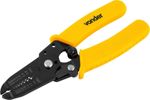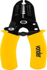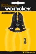 Marca: VonderCódigo: 3662107000Conteúdo da embalagem1 Alicate.Destaques e diferenciais:Possui cabo com revestimento plastificado, proporcionando maior conforto e ergonomia na utilização. Conta ainda com lâmina de corte e trava de segurança, facilitando o armazenamento.Aplicações e dicas de uso:Indicado para desencapar e cortar fios e cabos elétricos de 0,6 mm a 2,6 mm. Utilizado em eletroeletrônica, telefonia e setor automotivo.Comprimento total: 163,0 mm Capacidade do alicate desencapador: 0,6 mm a 2,6 mm Material do corpo do alicate: Aço carbono Acabamento: Pintado Material da lâmina (tipo/composição): Aço carbono Massa aproximada (peso) (kg): 0,131 kg Garantia - E (CDC):Garantia legal: 90 dias