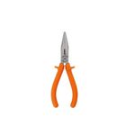ALICATE BICO MEIA CANA 6,5 - Dimensões da Peça: 16,5 x 5,8 x 2,4cm - Dimensões da Embalagem: 9 x 2 x 21cm - Quantidade Inner: 6 Peças - Dimensões Inner: 21 x 9 x 12cm - Quantidade Master: 48 Peças - Dimensões Master: 36 x 23 x 28cm - Material: Aço cromo vanádio, PVC - Cor: Cabo laranja - Tipo de Embalagem: Suporte - Marca: Corneta - Origem: Desenvolvido e importado sob a supervisão técnica da Corneta do Brasil. Capacidade de corte: - Fios - Cabos. - Arames. - Pregos. - Material duro: Ø2mm (Aço). - Material mole: Ø3mm (Alumínio, Cobre, Latão, Plástico, etc...). - Superior na norma DIN (1,6mm). Garantia do produto: 90 dias de garantia de acordo com o Código de Defesa do Consumidor + a Garantia do Fabricante