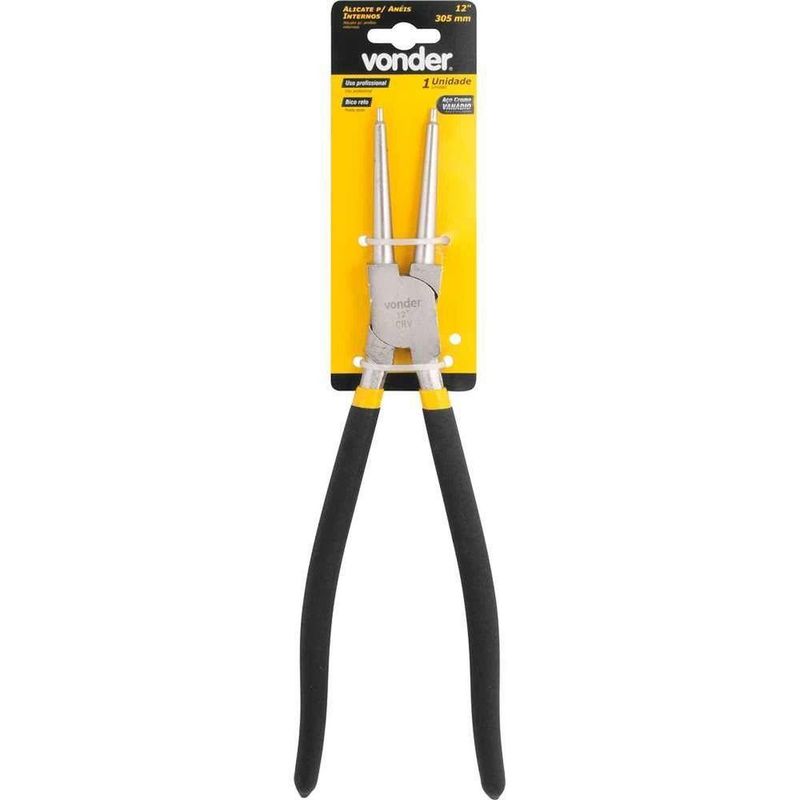 Alicate Para Anéis Interno, Bico Reto, 12, Vonder OstenvonderAlicate Para Anéis Interno, Bico Reto, 12, Vonder OstenVonder -Conteúdo da embalagem: 1 Alicate para anéis.Aplicação: Indicado para uso profissional na remoção e colocação de anéis internos de retenção.Destaques: Produzido em aço cromo vanádio, proporcionando maior resistência e durabilidade.Referência: 3662000310Garantia - E (CDC): Garantia legal: 90 diasMassa aproximada (peso): 0,479 kgDiâmetro do bico: 3,40 mmTipo do bico: RetoMaterial do corpo do alicate: Aço cromo vanádioTipo do cabo: PlastificadoComprimento total: 12 - 305 mmDiâmetro de aplicação: 60 mm a 110 mmAcabamento: NiqueladoDestaques Comercial: Produzido em aço cromo vanádio, proporcionando maior resistência e durabilidade.Aplicação Comercial: Indicado para uso profissional na remoção e colocação de anéis internos de retenção.Características Gerais do Produto:Garantia: - 3 Meses