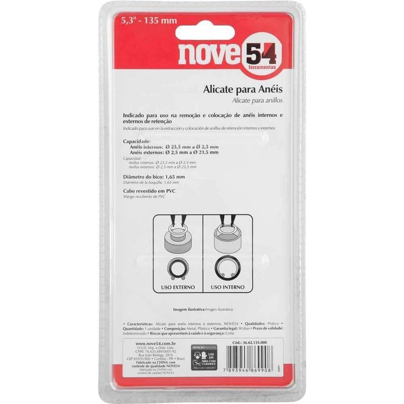 Alicate Para Anéis Internos E Externos Nove54 OstenvonderAlicate Para Anéis Internos e Externos Nove54 OstenVonder -Conteúdo da embalagem: 1 Alicate para anéis.Aplicação: Indicado para uso na remoção e colocação de anéis internos e externos de retenção.Destaques: Possui dois bicos, um para anéis internos e outro para anéis externos. Conta com cabo revestido em PVC.Garantia - E (CDC): Garantia legal: 90 diasReferência: 3662135000Massa aproximada (peso): 0,100 kgTipo de bico: RetoDiâmetro do bico: 1,65 mmComprimento total: 135 mmCapacidade de abertura/fechamento do alicate: 2,5 mm a 23,5 mmMaterial: Aço ligaDestaques Comercial: Possui dois bicos, um para anéis internos e outro para externos. Cabo revestido em PVC.Aplicação Comercial: Indicado para remoção e colocação de anéis internos e externos de retenção.Características Gerais do Produto:Garantia: - 3 Meses