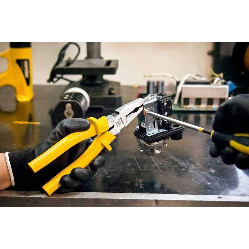 Alicate Universal 8, Cromo Vanádio, Com Isolação Até 1.000 V, Vonder OstenvonderAlicate Universal 8, Cromo Vanádio, com Isolação até 1.000 V, Vonder OstenVonder -Conteúdo da embalagem: 1 Alicate universal.Aplicação: Indicado para segurar peças planas e cilíndricas, cortar e desencapar fios.Destaques: Produzido em aço cromo vanádio, proporcionando maior resistência e durabilidade. Possui cabo isolado anatômico e antiderrapante, com abas de proteção, que oferece maior conforto e segurança ao operador. Possui cabo isolado para 1.000 V.Referência: 3662000008Garantia - E (CDC): Garantia legal: 90 diasMassa aproximada (peso): 0,448 kgTipo do cabo do alicate.: Cabo isolado 1.000 VMaterial do corpo do alicate: Aço cromo vanádioComprimento total: 8'' - 203 mmAcabamento: PolidoDestaques Comercial: Fabricado em aço cromo vanádio com cabo isolado anatômico e antiderrapante para até 1.000 V.Aplicação Comercial: Indicado para segurar peças, cortar e desencapar fios.Características Gerais do Produto:Garantia: - 3 Meses