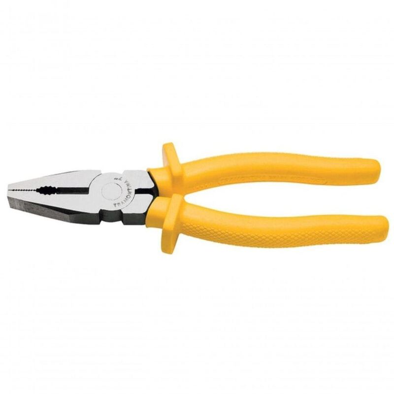 Alicate Universal Tramontina Master 7" Isolado 1000 V Alicate Universal 7 Polegadas Isolado 1000 V Tramontina MASTER.Versátil e , é indicado para cortar, apertar e dobrar cabos ou metais, sendo ideal para serviços elétricos e construção civil. Produzido em aço vanádio temperado, garante resistência e durabilidade. O cabo ergonômico com isolação elétrica de até V oferece conforto e proteção no uso em locais com baixa tensão. Uma ferramenta essencial para quem busca eficiência e confiabilidade no dia a dia.Recomendações de Uso:Modo de uso: Use óculos, luvas e outros equipamentos de proteção de acordo com a tarefa a ser executada. Observe as indicações de uso de cada tipo de alicate ou torquês. Nunca utilize um alicate ou torquês para cortar arames endurecidos, a não ser que tenha sido projetado para este fim. Nunca utilize o alicate ou torquês como martelo. Ele pode trincar ou até mesmo quebrar. Nunca exponha os alicates ou torqueses ao calor excessivo. Isto pode alterar o tratamento térmico aplicado no corte e afetar o seu desempenho. Sempre posicione o corte do alicate ou torquês perpendicularmente ao eixo do arame para uma operação mais rápida e segura. Utilize alicates isolados, identificados pela marcação V no cabo, quando for necessário trabalhar em locais com corrente elétrica. Importante: nestes casos, inspecione a integridade da isolação elétrica, e, se aparecerem trincas na isolação, suspenda o uso imediatamente. Nunca aumente o comprimento dos cabos dos alicates ou torqueses. Isto amplifica a força exercida sobre a cabeça da ferramenta podendo quebrá-la. Nunca utilize o alicate ou torquês em porcas e parafusos. Para estes trabalhos, indica-se o uso de chaves de aperto. Lubrifique periodicamente a articulação. Isto aumenta a vida útil do produto e melhora sua performance. Armazene em limpo e seco.- Foto meramente ilustrativa.Informações Adicionais:- Acabamento fosfatizado;- Cabeça e articulação lixadas;- Articulação suave para facilitar o uso;- Corpo forjado em aço vanádio e temperado;- Têmpera especial no gume de corte e mandíbulas;- Produto em conformidade com a NBR 9699 e NR10;- Os cabos possuem um formato ergonômico para aumentar o conforto;- As ferramentas são produzidas e testadas conforme normas específicas;- Isolação V para uso em locais com baixas tensões de até V em corrente alternada;- O aço carbono especial empregado na fabricação do produto, aliado à têmpera especial no gume de corte garantem maior resistência.