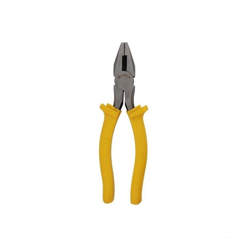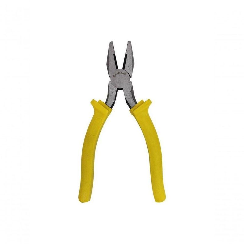 Alicate Universal Western 8 Isolado AmareloDescricao Um alicete ideal para segurar pregos e parafusos com mais firmeza e resistencia, tambem serve para segurar, puxar e cortar fios e tambem fixa-los. Forjado em aco carbono proporciona durabilidade, qualidade e resistencia! - Caracteristicas: Facil de segurar, material reforcado - Cuidados: Nao utilize em aparelhos energizados: Ferramenta nao isolada. Para reduzir o risco de lesoes, sempre use adequadamente equipamentos de protecao individual . (oculos de protecao, mascara, luvas, etc...) Necessario ao trabalho. Use a ferramenta correta para cada tipo de trabalho. Nao force a ferramenta. A ferramenta correta fara o trabalho melhor e mais seguro se utilizada para aquilo que foi projetada. Guarde em local seguro. Guarde estas instrucoes para futuras consultas. Manter fora do alcance das criancas. *Imagens meramente ilustrativas. Especificacao Tecnica - Dimensoes da Peca: 20 x 6,4 x 2,2cm - Dimensoes da Embalagem: 8 x 2,5 x 25,5cm - Tipo de Embalagem: Blister - Quantidade Inner: 6 Pecas - Dimensoes Inner: 27,5 x 16 x 9cm - Quantidade Master: 60 Pecas - Dimensoes Master: 46,5 x 29 x 34cm - Material: Aco carbono, PVC - Cor: Cabo Amarelo - Marca: Western - Contem: 1 unidadeDescricao Um alicete ideal para segurar pregos e parafusos com mais firmeza e resistencia, tambem serve para segurar, puxar e cortar fios e tambem fixa-los. Forjado em aco carbono proporciona durabilidade, qualidade e resistencia! - Caracteristicas: Facil de segurar, material reforcado - Cuidados: Nao utilize em aparelhos energizados: Ferramenta nao isolada. Para reduzir o risco de lesoes, sempre use adequadamente equipamentos de protecao individual . (oculos de protecao, mascara, luvas, etc...) Necessario ao trabalho. Use a ferramenta correta para cada tipo de trabalho. Nao force a ferramenta. A ferramenta correta fara o trabalho melhor e mais seguro se utilizada para aquilo que foi projetada. Guarde em local seguro. Guarde estas instrucoes para futuras consultas. Manter fora do alcance das criancas. *Imagens meramente ilustrativas. Especificacao Tecnica - Dimensoes da Peca: 20 x 6,4 x 2,2cm - Dimensoes da Embalagem: 8 x 2,5 x 25,5cm - Tipo de Embalagem: Blister - Quantidade Inner: 6 Pecas - Dimensoes Inner: 27,5 x 16 x 9cm - Quantidade Master: 60 Pecas - Dimensoes Master: 46,5 x 29 x 34cm - Material: Aco carbono, PVC - Cor: Cabo Amarelo - Marca: Western - Contem: 1 unidade