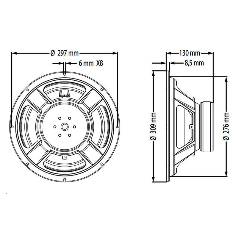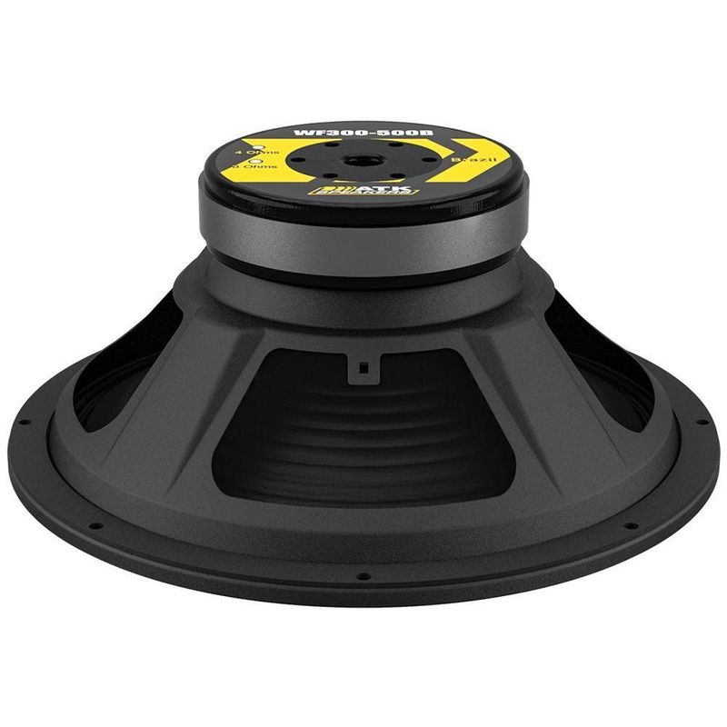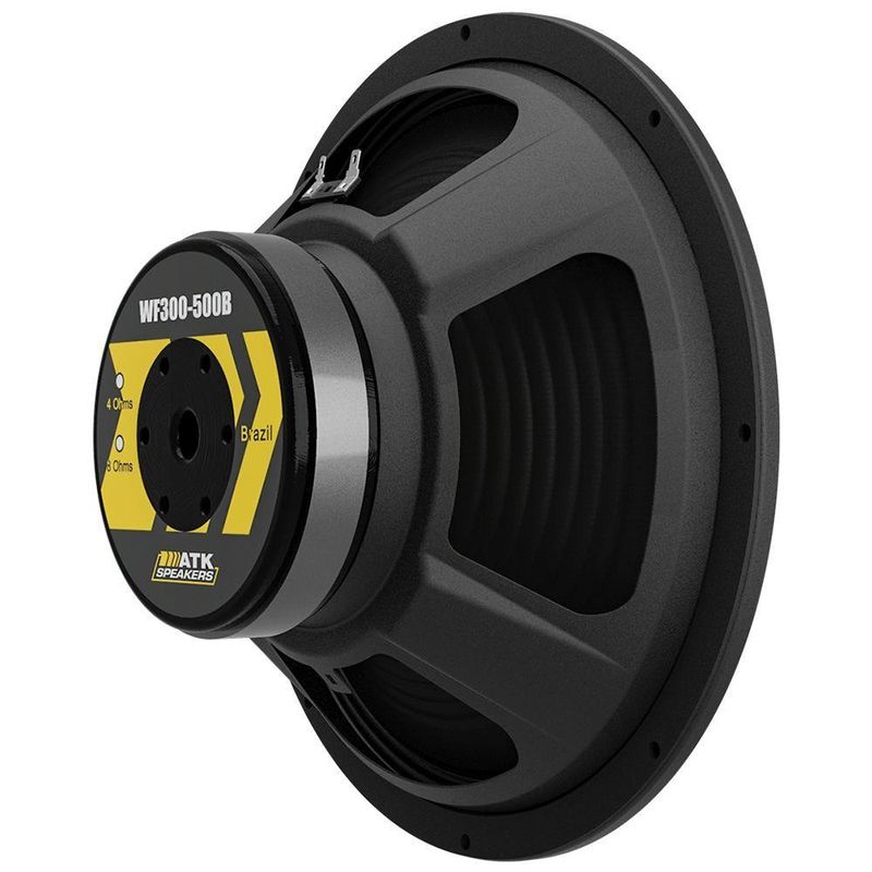 Alto-falante 250 Watts 12 Pol 8 Ohms Wf300-500b-8 AtkWF300-500B-8Descrição:Alto-falante de 12” de alta potência, com baixíssima distorção e compressão dinâmica. O elevado grau de exigência e o controle de qualidade na seleção dos materiais e na montagem, proporcionam excelente linearidade.Utiliza uma bobina de 50 mm de diâmetro (2”) e um cone impermeabilizado e resistente, montados em um conjunto magnético otimizado para um desempenho superior.Carcaça em chapa metálica com pintura eletrostática lisa na cor preta, assegurando um visual elegante e resistência mecânica.Projetado com base nos mais avançados softwares F.E.A (Finite Element Analysis), que permitem simulação de parâmetros elétricos e mecânicos com extrema precisão. Tudo isso para conceber um transdutor com ampla sensibilidade, melhor dissipação e excepcional performance.Principais Características:250 W de Potência Nominal8 Ohms de Impedância Nominal96 dB SPL de Sensibilidade40 a 2500 HzEspecificações:Potência Nominal Admissível(1): 250 WPotência Máxima do Amplificador(2): 4000 W picoSensibilidade (1W/1m)(3): 96 dB SPLImpedância Nominal: 8 OhmsImpedância Mínima: 7.5 OhmsDiâmetro Nominal: 304.8 mm (12 pol)Resposta de Frequência: 40 a 2500 HzDiâmetro da Bobina: 50 mm (2”)Fio da Bobina: Fio de Cobre Seção CircularResistência da Bobina (Re): 6.6 OhmsX.máx(4): 6.5 mmVolume de Ar ocupado: 2.5 L