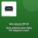 Alto Falante Portátil Aquário Rp-05O Alto Falante Aquario RP-05 para Rádio PX é a solução ideal para quem busca uma experiência sonora aprimorada em qualquer situação. Projetado com foco na qualidade e praticidade, este dispositivo portátil e compacto foi desenvolvido especialmente para amplificar o som dos rádios PX, garantindo maior clareza e fidelidade sonora, seja no carro ou no caminhão. Sua instalação é fácil e versátil, podendo ser ajustada conforme a conveniência do usuário.Com uma impedância de 8 ohms e uma potência nominal de 3W, que pode atingir até 5W, o Alto Falante RP-05 oferece um desempenho sólido, proporcionando um áudio mais robusto e definido. Sua resposta de frequência varia entre 200Hz e 12kHz, cobrindo uma ampla faixa sonora que resulta em um som mais detalhado e equilibrado. Além disso, o produto é equipado com um conector P2 mono (3,5mm) macho angular, garantindo compatibilidade com diversos dispositivos e rádios PX.Fabricado com material PS de alto impacto e acabamento de textura fina, o RP-05 combina durabilidade e estilo. Seu design compacto, com dimensões de 125x80x60mm e um peso de apenas 290g, facilita o transporte e a instalação, sem comprometer a robustez do produto. O cabo blindado de 2 metros oferece liberdade de posicionamento, permitindo que você ajuste o alto-falante de acordo com suas necessidades, sem preocupações com interferências.Seja para uso profissional ou recreativo, o Alto Falante Aquario RP-05 se destaca como uma escolha confiável para quem valoriza qualidade sonora e praticidade. Ele transforma sua experiência com o rádio PX, garantindo que cada transmissão seja ouvida com máxima clareza e potência. Eleve o nível do seu áudio com um produto que entrega desempenho, resistência e versatilidade em um único pacote.O Alto Falante Aquario RP-05 para Rádio PX é a solução ideal para quem busca uma experiência sonora aprimorada em qualquer situação. Projetado com foco na qualidade e praticidade, este dispositivo portátil e compacto foi desenvolvido especialmente para amplificar o som dos rádios PX, garantindo maior clareza e fidelidade sonora, seja no carro ou no caminhão. Sua instalação é fácil e versátil, podendo ser ajustada conforme a conveniência do usuário.Com uma impedância de 8 ohms e uma potência nominal de 3W, que pode atingir até 5W, o Alto Falante RP-05 oferece um desempenho sólido, proporcionando um áudio mais robusto e definido. Sua resposta de frequência varia entre 200Hz e 12kHz, cobrindo uma ampla faixa sonora que resulta em um som mais detalhado e equilibrado. Além disso, o produto é equipado com um conector P2 mono (3,5mm) macho angular, garantindo compatibilidade com diversos dispositivos e rádios PX.Fabricado com material PS de alto impacto e acabamento de textura fina, o RP-05 combina durabilidade e estilo. Seu design compacto, com dimensões de 125x80x60mm e um peso de apenas 290g, facilita o transporte e a instalação, sem comprometer a robustez do produto. O cabo blindado de 2 metros oferece liberdade de posicionamento, permitindo que você ajuste o alto-falante de acordo com suas necessidades, sem preocupações com interferências.Seja para uso profissional ou recreativo, o Alto Falante Aquario RP-05 se destaca como uma escolha confiável para quem valoriza qualidade sonora e praticidade. Ele transforma sua experiência com o rádio PX, garantindo que cada transmissão seja ouvida com máxima clareza e potência. Eleve o nível do seu áudio com um produto que entrega desempenho, resistência e versatilidade em um único pacote.