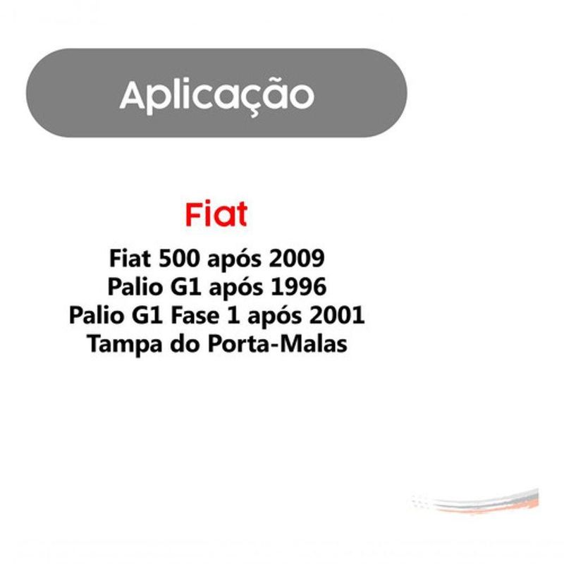 Amortecedor Mola Gás Tampa Porta-malas Palio 96-07 Fiat 500CONTEÚDO DA EMBALAGEM ------------------------------------------------- - Amortecedor De Mola À Gás Da Tampa Do Porta-MalasVEÍCULOS APLICÁVEIS Fiat------------------- 500 Após 09 ESPECIFICAÇÕES -------------------------------- Tipo de Conector: ATX01 Diâmetro do Pistão: 8 mm Diâmetro do Tupo: 18 mm Comprimento: 477 mm Curso: 200 mm 37 KGF IDENTIFICAÇÃO DO PRODUTO --------------------------------- Marca: Amortex Número da Peça (Part Number): 51785442 Código Universal do Produto (EAN): 7895272962803 Código IPI: 87082999 Código NCM: 8871 SKU Universal: 96280Ford