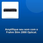 Amplificador Frahm Slim 2000 Optical G6Descubra o poder do Amplificador Frahm Slim 2000 Optical G6, um equipamento de alta performance que transforma sua experiência sonora. Com potência RMS de 120W a 2?, ele oferece um som robusto e envolvente. Este amplificador mono de Classe AB é ideal para quem busca qualidade e eficiência, garantindo clareza em todas as frequências com suas três vias: grave, médio e agudo. Compacto e elegante, o Slim 2000 é perfeito para integrar-se a qualquer ambiente, proporcionando um áudio de excelência e elevando o padrão de suas músicas favoritas.Descubra o poder do Amplificador Frahm Slim 2000 Optical G6, um equipamento de alta performance que transforma sua experiência sonora. Com potência RMS de 120W a 2?, ele oferece um som robusto e envolvente. Este amplificador mono de Classe AB é ideal para quem busca qualidade e eficiência, garantindo clareza em todas as frequências com suas três vias: grave, médio e agudo. Compacto e elegante, o Slim 2000 é perfeito para integrar-se a qualquer ambiente, proporcionando um áudio de excelência e elevando o padrão de suas músicas favoritas.