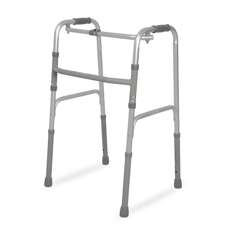 Segurança, mobilidade e praticidade no seu dia a dia O Andador 3 em 1 D10 Pop Novo Dellamed é indicado para oferecer apoio seguro, estabilidade e praticidade na locomoção de usuários que necessitam de suporte para caminhar com mais confiança. Este modelo oferece 3 modalidades de uso — fixo, articulado e móvel — e conta com 8 níveis de regulagem de altura por pino click, permitindo ajuste preciso conforme a estatura do usuário. O sistema de barra frontal com clique facilita o processo de dobragem, tornando o andador prático para guardar e transportar. Diferenciais 3 modos de uso: fixo, articulado e móvel, em um único produto. Sistema de barra frontal com clique para dobragem rápida e prática. Estrutura leve em alumínio e robusta com barra em aço carbono. Manoplas anatômicas para maior conforto do usuário. Ponteiras em borracha que oferecem segurança e estabilidade. Compatível com par de rodas opcional (vendido separadamente). Características Estrutura em alumínio fosco anodizado. Barra dupla de conexão e pernas em aço carbono com pintura epóxi cinza. Manoplas em polipropileno. Ponteiras em borracha. Cor: cinza e alumínio fosco. 8 níveis de regulagem de altura com sistema pino click. Produto dobrável para transporte e armazenamento fácil. Informações Técnicas Peso líquido: 2,5 kg Capacidade de peso: suporta até 130 kg Dimensões abertas (C x L x A): Mínima 55 x 47,5 x 77 cm | Máxima 55 x 47,5 x 95 cm Dimensões dobrado (C x L x A): 48 x 10 x 95 cm Medida do pacote individual: 59,5 x 53 x 11 cm Modalidades: Fixo, articulado e móvel Altura mínima do andador: 77 cm Altura máxima do andador: 95 cm Conteúdo da Embalagem 1 andador D10 POP Dellamed 1 manual de instruções Garantia Estrutura (alumínio e aço carbono): 6 meses. Componentes (ponteiras, manoplas e sistema de pino click fixo e móvel): 3 meses.