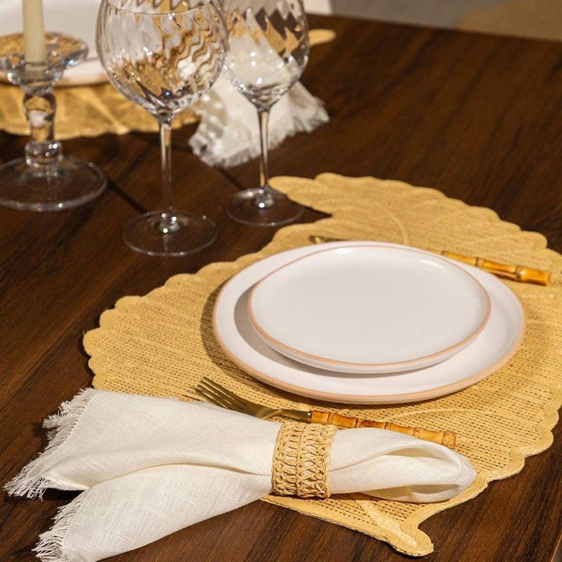 Anel De Guardanapo Copa E Cia 4 Peças Brazil Nature SpinAnel de Guardanapo Copa e Cia 4 Peças Brazil Nature Spin -Características Gerais do Produto: - Composição: Poliéster; Juta; Poliamida - Detalhes: Produto produzido no Brasil.; Kit Contém 04 peças.; Kit Contém 04 peças.; Design Exclusivo Copa&Cia.; As cores podem sofrer pequenas alterações de cor, variando de monitor para monitor.; Os objetos que ambientam as fotos não acompanham o produto.; As fotos produzidas são apenas como sugestão de uso com as demais peças da coleção. - Cuidados: Não Deixar de Molho.; Armazenar em local seco e arejado.; Não molhar; Não utilizar solventes, abrasivos ou alvejantes.; Limpar manualmente com pano úmido e detergente neutro. - Dimensões (cm): Diâmetro interno do Anel: : 4 cm ØAcompanha o produto: - 4 Peças de Anel de Guardanapo Garantia: - 7 dias/30 dias contra defeito de fabricação