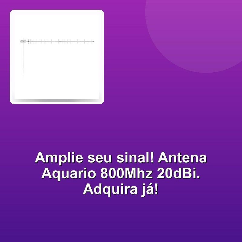 Antena Celular Aquario Cf-820 800mhz 20dbi 24 ElementosA Antena Celular Aquario CF-820 é a escolha definitiva para quem busca amplificar o sinal de celular com eficiência e confiabilidade. Projetada com precisão, ela opera na frequência de 800MHz e oferece um ganho impressionante de 20 dBi, permitindo que você tenha uma recepção clara e potente, mesmo em áreas remotas. Equipado com 24 elementos, este modelo é aprimorado para oferecer desempenho superior, garantindo que as chamadas telefônicas sejam nítidas e que o acesso à internet móvel seja rápido, eliminando frustrações com conexões instáveis.Esta antena é ideal tanto para uso residencial quanto comercial, atendendo à crescente demanda por comunicação de qualidade em locais onde o sinal tende a ser fraco ou inconsistente. Sua construção robusta e materiais de alta qualidade asseguram uma durabilidade excepcional, resistindo às intempéries e garantindo uma performance estável sob diversas condições climáticas.Além de promover um aumento significativo na intensidade do sinal, a Antena Celular Aquario CF-820 destaca-se pela facilidade de instalação. Com um design pensado para ser intuitivo, você poderá configurá-la sem complicações, seguindo instruções claras e diretas. Ao escolher este produto, você não só incrementa a qualidade das chamadas e a estabilidade da conexão de internet, mas também proporciona uma experiência de comunicação sem interrupções, seja em atividades profissionais ou momentos de lazer.Em resumo, a Antena Celular Aquario CF-820 é um investimento inteligente para quem não abre mão de estar sempre conectado, mesmo nos locais mais desafiadores. Eleve seu padrão de comunicação com uma antena que combina tecnologia de ponta com praticidade e eficácia insuperável.A Antena Celular Aquario CF-820 é a escolha definitiva para quem busca amplificar o sinal de celular com eficiência e confiabilidade. Projetada com precisão, ela opera na frequência de 800MHz e oferece um ganho impressionante de 20 dBi, permitindo que você tenha uma recepção clara e potente, mesmo em áreas remotas. Equipado com 24 elementos, este modelo é aprimorado para oferecer desempenho superior, garantindo que as chamadas telefônicas sejam nítidas e que o acesso à internet móvel seja rápido, eliminando frustrações com conexões instáveis.Esta antena é ideal tanto para uso residencial quanto comercial, atendendo à crescente demanda por comunicação de qualidade em locais onde o sinal tende a ser fraco ou inconsistente. Sua construção robusta e materiais de alta qualidade asseguram uma durabilidade excepcional, resistindo às intempéries e garantindo uma performance estável sob diversas condições climáticas.Além de promover um aumento significativo na intensidade do sinal, a Antena Celular Aquario CF-820 destaca-se pela facilidade de instalação. Com um design pensado para ser intuitivo, você poderá configurá-la sem complicações, seguindo instruções claras e diretas. Ao escolher este produto, você não só incrementa a qualidade das chamadas e a estabilidade da conexão de internet, mas também proporciona uma experiência de comunicação sem interrupções, seja em atividades profissionais ou momentos de lazer.Em resumo, a Antena Celular Aquario CF-820 é um investimento inteligente para quem não abre mão de estar sempre conectado, mesmo nos locais mais desafiadores. Eleve seu padrão de comunicação com uma antena que combina tecnologia de ponta com praticidade e eficácia insuperável.