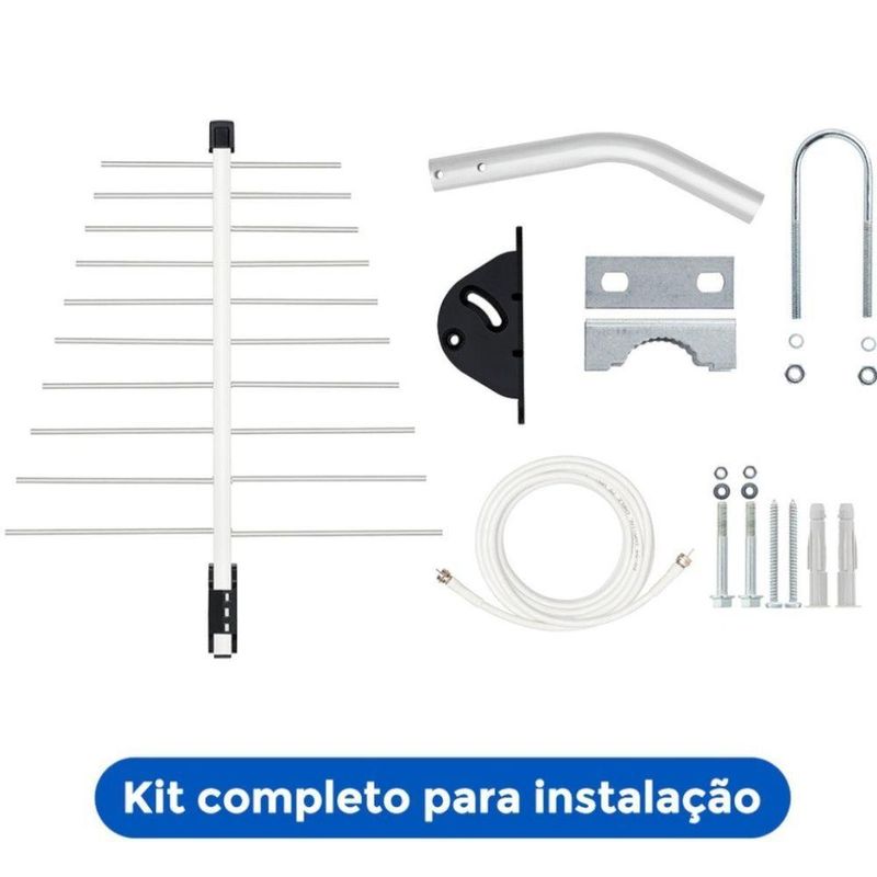 Antena Digital Externa Log Tv 12dbi 20 Elem. Kit Inst.A Antena Digital Externa Log para TV HDTV/UHF/4K 12dBi com 20 elementos é a solução perfeita para quem busca qualidade excepcional em som e imagem, mesmo em locais com baixo sinal digital ou distantes das torres de transmissão. Desenvolvida com tecnologia avançada e construção robusta, esta antena garante a melhor captação do sinal digital disponível nos canais abertos, permitindo que você desfrute de uma experiência visual incrível em alta definição (HDTV), UHF e até mesmo preparada para 4K*.Com seu poderoso ganho de 12dBi e design compacto, a antena apresenta um número maior de elementos em comparação às concorrentes, tornando-a mais eficiente na amplificação do sinal. Além disso, o exclusivo filtro 4G elimina as interferências provocadas pela banda de telefonia celular, assegurando uma transmissão de imagem e som com máxima clareza e definição. É ideal para instalações coletivas, como pequenos prédios ou residências que precisam ativar múltiplos pontos de TV com apenas uma antena.Compatível com todos os modelos de TVs e conversores digitais disponíveis no Brasil, esta antena foi projetada para atender às mais variadas necessidades de conexão, proporcionando versatilidade e praticidade. Sua fabricação com a qualidade Aquário garante resistência e durabilidade, mesmo sob condições climáticas adversas, oferecendo tranquilidade e confiabilidade no uso a longo prazo.A antena vem completa com um kit de instalação que inclui mastro, suporte de parede, cabo coaxial de 10 metros e acessórios de fixação, facilitando o processo de montagem e uso. Compacta e leve, com apenas 670g e dimensões de 385 x 320 x 24 mm, ela se adapta facilmente ao seu espaço sem comprometer sua funcionalidade. Com frequência de 470-698 MHz, impedância de 75O e conector F fêmea dianteiro, esta antena é a escolha definitiva para quem exige excelência em recepção de sinal digital.A Antena Digital Externa Log para TV HDTV/UHF/4K 12dBi com 20 elementos é a solução perfeita para quem busca qualidade excepcional em som e imagem, mesmo em locais com baixo sinal digital ou distantes das torres de transmissão. Desenvolvida com tecnologia avançada e construção robusta, esta antena garante a melhor captação do sinal digital disponível nos canais abertos, permitindo que você desfrute de uma experiência visual incrível em alta definição (HDTV), UHF e até mesmo preparada para 4K*.Com seu poderoso ganho de 12dBi e design compacto, a antena apresenta um número maior de elementos em comparação às concorrentes, tornando-a mais eficiente na amplificação do sinal. Além disso, o exclusivo filtro 4G elimina as interferências provocadas pela banda de telefonia celular, assegurando uma transmissão de imagem e som com máxima clareza e definição. É ideal para instalações coletivas, como pequenos prédios ou residências que precisam ativar múltiplos pontos de TV com apenas uma antena.Compatível com todos os modelos de TVs e conversores digitais disponíveis no Brasil, esta antena foi projetada para atender às mais variadas necessidades de conexão, proporcionando versatilidade e praticidade. Sua fabricação com a qualidade Aquário garante resistência e durabilidade, mesmo sob condições climáticas adversas, oferecendo tranquilidade e confiabilidade no uso a longo prazo.A antena vem completa com um kit de instalação que inclui mastro, suporte de parede, cabo coaxial de 10 metros e acessórios de fixação, facilitando o processo de montagem e uso. Compacta e leve, com apenas 670g e dimensões de 385 x 320 x 24 mm, ela se adapta facilmente ao seu espaço sem comprometer sua funcionalidade. Com frequência de 470-698 MHz, impedância de 75O e conector F fêmea dianteiro, esta antena é a escolha definitiva para quem exige excelência em recepção de sinal digital.