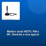 Antena Digital Hdtv 5 Em 1 Vhf/uhf/fm/hdtv/4k 5m Dtv-150A Antena Digital HDTV 5 em 1 é a solução ideal para quem busca qualidade superior de som e imagem em sua TV, aliada a um design moderno e compacto. Com o melhor desempenho do mercado, este produto foi desenvolvido para garantir uma experiência de entretenimento incomparável, captando sinais em VHF, UHF, FM e HDTV digital, além de ser compatível com a tecnologia 4K. Com esta antena, você terá acesso a uma maior variedade de canais e poderá desfrutar de imagens nítidas e cores vibrantes, tudo em alta definição.Prática e versátil, a antena já vem montada e pode ser instalada tanto em ambientes internos quanto externos, adaptando-se às suas necessidades. Seu cabo de 5 metros proporciona mais liberdade na escolha do local de instalação, garantindo maior conveniência e flexibilidade. Além disso, a base magnetizada oferece estabilidade e facilidade na fixação, tornando o processo de instalação ainda mais simples e eficiente.Com design funcional e moderno, esta antena compacta se integra perfeitamente à decoração de qualquer ambiente, sem comprometer o espaço ou a estética. Sua compatibilidade com todos os modelos de TVs e conversores digitais do mercado elimina preocupações, tornando-a uma escolha certeira para qualquer situação. Seja para assistir aos novos canais digitais em Full HD ou para explorar a tecnologia 4K, esta antena é a ferramenta definitiva para transformar a maneira como você consome entretenimento.Fabricada com especificações técnicas de alta qualidade, esta antena opera na frequência de 470-890 MHz, com ganho de 3 dBi, e conta com um conector F macho para uma conexão segura e eficiente. Com apenas 355 g, é leve e fácil de manusear, garantindo praticidade desde a instalação até o uso diário. Tudo o que você precisa para uma experiência audiovisual surpreendente está aqui. Adquira agora a Antena Digital HDTV 5 em 1 e descubra um novo padrão de qualidade e desempenho em sua TV!A Antena Digital HDTV 5 em 1 é a solução ideal para quem busca qualidade superior de som e imagem em sua TV, aliada a um design moderno e compacto. Com o melhor desempenho do mercado, este produto foi desenvolvido para garantir uma experiência de entretenimento incomparável, captando sinais em VHF, UHF, FM e HDTV digital, além de ser compatível com a tecnologia 4K. Com esta antena, você terá acesso a uma maior variedade de canais e poderá desfrutar de imagens nítidas e cores vibrantes, tudo em alta definição.Prática e versátil, a antena já vem montada e pode ser instalada tanto em ambientes internos quanto externos, adaptando-se às suas necessidades. Seu cabo de 5 metros proporciona mais liberdade na escolha do local de instalação, garantindo maior conveniência e flexibilidade. Além disso, a base magnetizada oferece estabilidade e facilidade na fixação, tornando o processo de instalação ainda mais simples e eficiente.Com design funcional e moderno, esta antena compacta se integra perfeitamente à decoração de qualquer ambiente, sem comprometer o espaço ou a estética. Sua compatibilidade com todos os modelos de TVs e conversores digitais do mercado elimina preocupações, tornando-a uma escolha certeira para qualquer situação. Seja para assistir aos novos canais digitais em Full HD ou para explorar a tecnologia 4K, esta antena é a ferramenta definitiva para transformar a maneira como você consome entretenimento.Fabricada com especificações técnicas de alta qualidade, esta antena opera na frequência de 470-890 MHz, com ganho de 3 dBi, e conta com um conector F macho para uma conexão segura e eficiente. Com apenas 355 g, é leve e fácil de manusear, garantindo praticidade desde a instalação até o uso diário. Tudo o que você precisa para uma experiência audiovisual surpreendente está aqui. Adquira agora a Antena Digital HDTV 5 em 1 e descubra um novo padrão de qualidade e desempenho em sua TV!