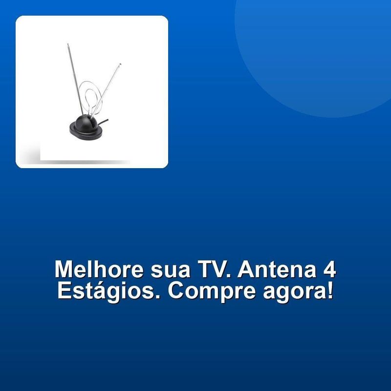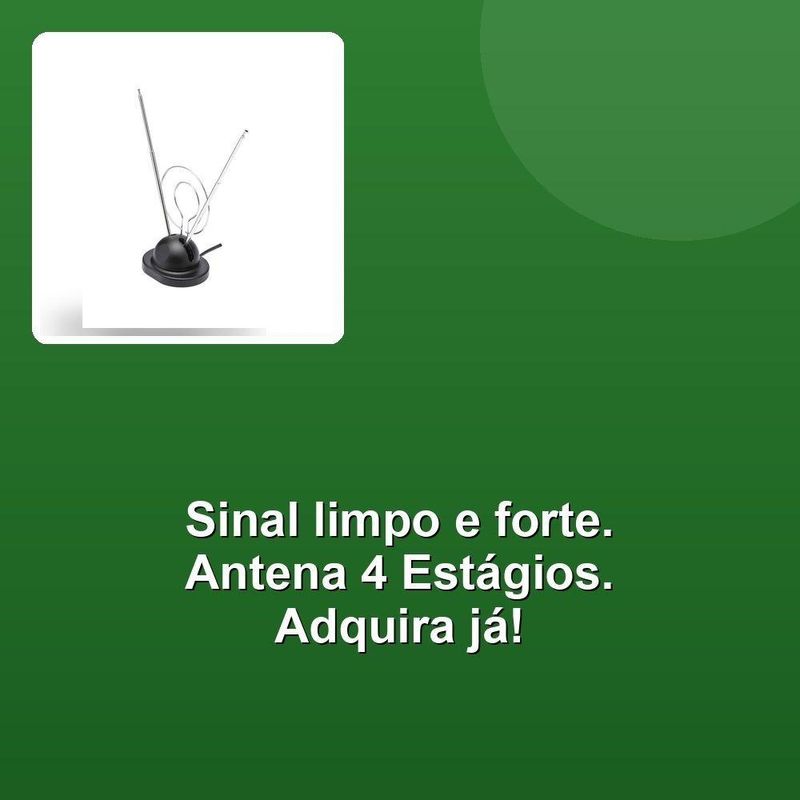 Antena Interna Tv 4 Estágios Base CoaxialDescubra uma experiência de entretenimento envolvente com a Antena Interna Para TV 4 Estágios com Base e Cabo Coaxial, um produto desenvolvido para oferecer máxima qualidade e desempenho. Projetada com tecnologia de ponta, esta antena é ideal para quem busca praticidade, eficiência e qualidade superior na recepção de canais. Com seus quatro estágios, ela garante uma captação de sinal aprimorada, proporcionando imagens nítidas e som cristalino, elevando o padrão de sua experiência televisiva.Fabricada a partir de um rigoroso processo de seleção dos melhores fornecedores, esta antena reflete o compromisso com a excelência. Cada detalhe foi pensado para oferecer durabilidade, desempenho e confiabilidade. O cabo coaxial integrado assegura uma conexão estável e eficiente, permitindo que você aproveite seus programas favoritos sem interrupções. A base robusta também oferece estabilidade e praticidade, facilitando a instalação e garantindo que você tenha um produto que se adapta facilmente ao seu ambiente.Mais do que uma antena, este produto é uma solução pensada para simplificar sua vida. Se você valoriza qualidade e deseja transformar sua experiência de assistir TV, esta antena é a escolha perfeita. E não se trata apenas de um item funcional; é um reflexo do nosso compromisso em oferecer o melhor a você. Nossa equipe trabalha incansavelmente para garantir que cada etapa, desde a seleção dos materiais até a entrega, seja marcada por eficiência e cuidado, tornando sua compra uma experiência agradável e satisfatória.A Antena Interna Para TV 4 Estágios com Base e Cabo Coaxial é mais do que um acessório: é um investimento em qualidade, confiabilidade e inovação. Escolha um produto que você pode confiar e se orgulhar de ter em sua casa. Eleve sua conexão com o entretenimento e experimente a diferença que nossa paixão pela excelência pode fazer.Descubra uma experiência de entretenimento envolvente com a Antena Interna Para TV 4 Estágios com Base e Cabo Coaxial, um produto desenvolvido para oferecer máxima qualidade e desempenho. Projetada com tecnologia de ponta, esta antena é ideal para quem busca praticidade, eficiência e qualidade superior na recepção de canais. Com seus quatro estágios, ela garante uma captação de sinal aprimorada, proporcionando imagens nítidas e som cristalino, elevando o padrão de sua experiência televisiva.Fabricada a partir de um rigoroso processo de seleção dos melhores fornecedores, esta antena reflete o compromisso com a excelência. Cada detalhe foi pensado para oferecer durabilidade, desempenho e confiabilidade. O cabo coaxial integrado assegura uma conexão estável e eficiente, permitindo que você aproveite seus programas favoritos sem interrupções. A base robusta também oferece estabilidade e praticidade, facilitando a instalação e garantindo que você tenha um produto que se adapta facilmente ao seu ambiente.Mais do que uma antena, este produto é uma solução pensada para simplificar sua vida. Se você valoriza qualidade e deseja transformar sua experiência de assistir TV, esta antena é a escolha perfeita. E não se trata apenas de um item funcional; é um reflexo do nosso compromisso em oferecer o melhor a você. Nossa equipe trabalha incansavelmente para garantir que cada etapa, desde a seleção dos materiais até a entrega, seja marcada por eficiência e cuidado, tornando sua compra uma experiência agradável e satisfatória.A Antena Interna Para TV 4 Estágios com Base e Cabo Coaxial é mais do que um acessório: é um investimento em qualidade, confiabilidade e inovação. Escolha um produto que você pode confiar e se orgulhar de ter em sua casa. Eleve sua conexão com o entretenimento e experimente a diferença que nossa paixão pela excelência pode fazer.
