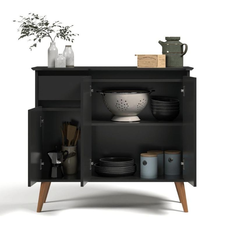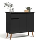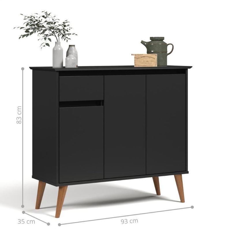 Aparador 1 Gaveta 3 Portas Londres PretoBuffet aparador foi projetado para agregar diferentes espaços e ambientes, proporcionando elegância, charme e sofisticação. Conta com uma gaveta para organização de objetos com corrediças telescópicas deixando a abertura e o fechamento muito mais delicado e macio, que aumentando a durabilidade do produto. Dimensões do produto montado: Altura: 83 cm Largura: 93 cm Profundidade: 35 cm Características: - Material MDF/MDP - Cor preto - Nicho - Pés - Prateleira - Porta - Gaveta Itens Incluso: 01 Aparador. Kit completo para montagem. Manual de montagem. Observações: - Não nos responsabilizamos pela montagem do produto. - Sistema de Montagem: Parafusos, Cavilhas e Tampos. - É recomendado que a montagem seja feita por um profissional qualificado. - As imagens indicam uma sugestão de uso e são apenas ilustrativas, os objetos decorativos não estão inclusos. - Ao iniciar a montagem, forre o chão com o papelão das embalagens para proteger as peças de arranhões. Instruções e Cuidados: Limpar com pano seco, manter em lugar livre de umidade, ao abrigo de exposição direta ao sol. GARANTIA DO FABRICANTE: 3 | QUANTIDADES DE CAIXAS DE EMBALAGEM: 1 | COR PREDOMINANTE: PRETO | CORES DO PRODUTO (FILTRO DE CORES): PRETO | DESCRIÃ?Ã?O DO TAMANHO: 83X93X35 | PRODUTO PRECISA DE MONTAGEM?: Sim, a montagem à facil mas sugerimos a contratação de um montador profissional para a montagem do produto. Não nos responsabilizamos por danos causados no ato da montagem. | ALTURA DO PRODUTO (CM): 83 | LARGURA DO PRODUTO (CM): 93 | COMPRIMENTO DO PRODUTO (CM): 35 | PESO DO PRODUTO (KG): 26 | ALTURA DO PRODUTO COM EMBALAGEM (CM): 15 | LARGURA PRODUTO COM EMBALAGEM (CM): 38 | COMPRIMENTO PRODUTO COM EMBALAGEM (CM): 98 | PESO PRODUTO COM EMBALAGEM (KG): 26 | PRODUTO: APARADAOR | MARCA: CASAH | QUANTIDADE DE PORTAS: 3 | QUANTIDADE DE PRATELEIRAS: 1 | QUANTIDADE DE NICHOS: 2 | QUANTIDADE DE GAVETAS: 1 | ESTADO DE ORIGEM: SP | MATERIAL PRINCIPAL: MDF/MDP | INSTRUÃ?Ã-ES/CUIDADOS: Limpar com pano macio e seco, não utilizar produtos abrasivos.