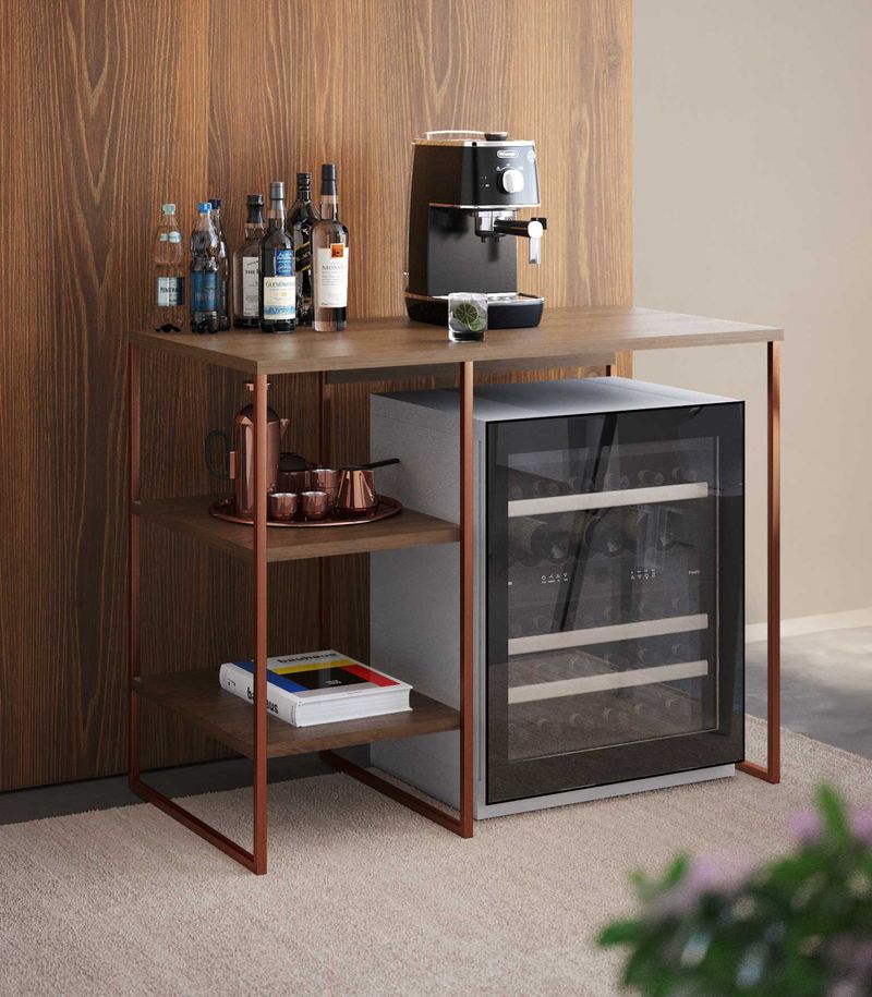 Aparador Adega Bourbon Cobre e Carvalho 95 Cm - Asturias Complemente sua decoração com estilo e funcionalidade O Aparador Adega Bourbon é um móvel curinga que se encaixa perfeitamente em qualquer estilo de decoração. Seja na sala de estar, na sala de jantar ou até mesmo em um corredor, ele é perfeito para criar um cantinho aconchegante. Seu amplo espaço de tampo e prateleiras permite acomodar objetos do dia a dia e itens decorativos, proporcionando organização e beleza ao ambiente. Com um design que combina estrutura em aço e prateleiras amadeiradas, o Aparador Adega Bourbon apresenta um visual industrial e moderno, conferindo um toque de sofisticação ao seu lar. Diferenciais: Material resistente: Aço carbono e MDP garantem durabilidade e robustez ao móvel. Pintura eletrostática: Acabamento de alta qualidade e fácil de limpar. Versatilidade: Pode suportar até 15 kg por prateleira, permitindo armazenar diversos objetos. Design elegante: O contraste entre o cobre e carvalho confere um visual charmoso e contemporâneo ao ambiente. Mais sobre o Produto: O Aparador Adega Bourbon é ideal para quem busca aliar praticidade e estilo na decoração da casa. Suas prateleiras espaçosas são perfeitas para organizar copos, garrafas, livros, vasos e outros itens decorativos. Além disso, sua estrutura em aço carbono e MDP garante resistência e estabilidade, tornando-o uma escolha segura e elegante para o ambiente. Dicas de Uso: Na sala de estar: Utilize o Aparador Adega Bourbon para expor objetos decorativos, como porta-retratos, velas aromáticas e plantas, criando um ambiente acolhedor e sofisticado. Na sala de jantar: Organize taças, copos e garrafas de vinho nas prateleiras do aparador, facilitando o acesso durante as refeições e conferindo um toque charmoso à decoração. No corredor: Crie um cantinho de café aconchegante com o Aparador Adega Bourdon, disponibilizando xícaras, cafeteira e açucareiro para seus momentos de relaxamento. Ficha Técnica: Marca: Asturias Altura: 75 cm Comprimento: 95 cm Profundidade: 50 cm Material: Aço carbono e MDP Peso: 7000 gramas Categoria: Aparadores Suporta até 15 kg por prateleira
