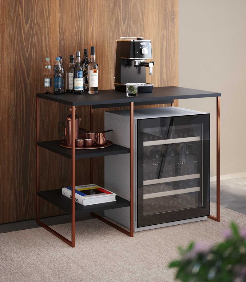 Aparador Adega Bourbon Cobre com Preto 95 Cm - Asturias Complemente sua decoração com estilo e funcionalidade O Aparador Adega Bourbon é um móvel curinga que se encaixa perfeitamente em qualquer estilo de decoração. Seja na sala de estar, na sala de jantar ou até mesmo em um corredor, ele é perfeito para criar um cantinho aconchegante. Seu amplo espaço de tampo e prateleiras permite acomodar objetos do dia a dia e itens decorativos, proporcionando organização e beleza ao ambiente. Com um design que combina estrutura em aço e prateleiras amadeiradas, o Aparador Adega Bourbon apresenta um visual industrial e moderno, conferindo um toque de sofisticação ao seu lar. Diferenciais: Material resistente: Aço carbono e MDP garantem durabilidade e robustez ao móvel. Pintura eletrostática: Acabamento de alta qualidade e fácil de limpar. Versatilidade: Pode suportar até 15 kg por prateleira, permitindo armazenar diversos objetos. Design elegante: O contraste entre o preto e o carvalho confere um visual charmoso e contemporâneo ao ambiente. Mais sobre o Produto: O Aparador Adega Bourbon é ideal para quem busca aliar praticidade e estilo na decoração da casa. Suas prateleiras espaçosas são perfeitas para organizar copos, garrafas, livros, vasos e outros itens decorativos. Além disso, sua estrutura em aço carbono e MDP garante resistência e estabilidade, tornando-o uma escolha segura e elegante para o ambiente. Dicas de Uso: Na sala de estar: Utilize o Aparador Adega Bourbon para expor objetos decorativos, como porta-retratos, velas aromáticas e plantas, criando um ambiente acolhedor e sofisticado. Na sala de jantar: Organize taças, copos e garrafas de vinho nas prateleiras do aparador, facilitando o acesso durante as refeições e conferindo um toque charmoso à decoração. No corredor: Crie um cantinho de café aconchegante com o Aparador Adega Bourbon, disponibilizando xícaras, cafeteira e açucareiro para seus momentos de relaxamento. Ficha Técnica: Marca: Asturias Altura: 75 cm Comprimento: 95 cm Profundidade: 50 cm Material: Aço carbono e MDP Peso: 9000 gramas Categoria: Aparadores Suporta até 15 kg por prateleira