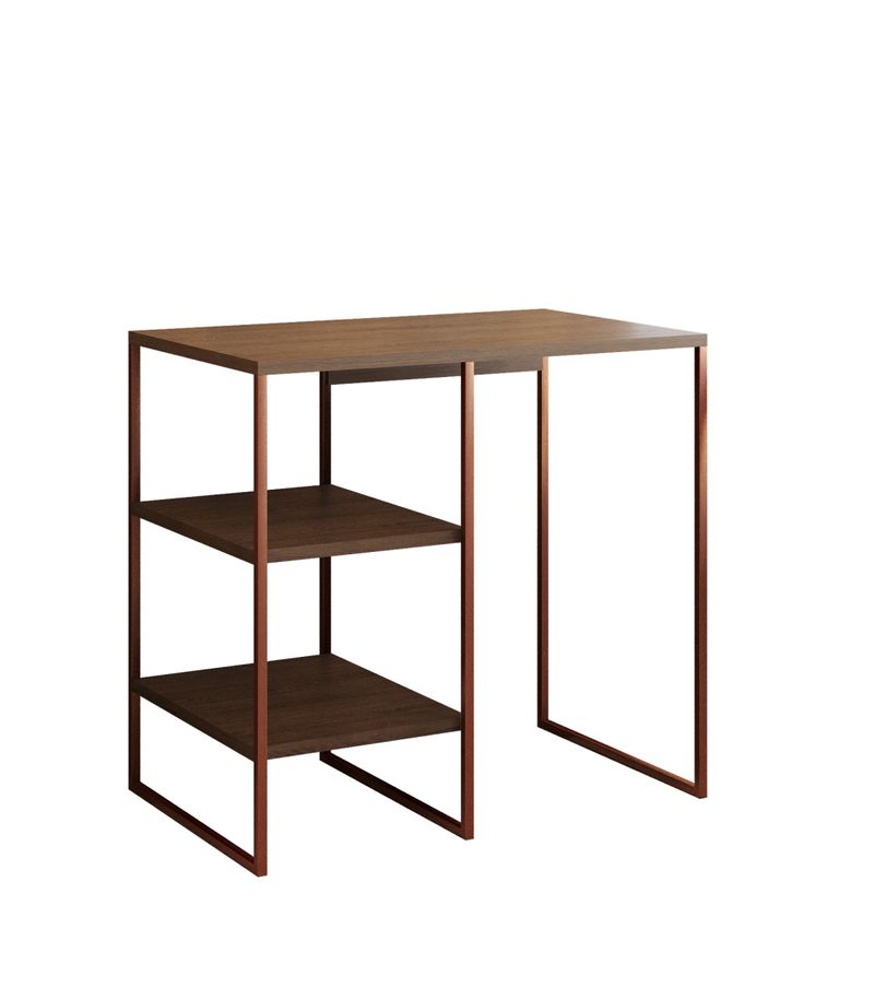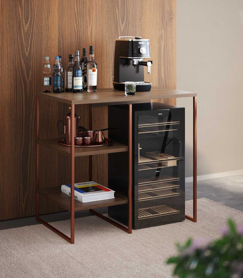 Aparador Adega Bourbon Cobre E Imbuia 80 Cm Complemente sua decoração com estilo e funcionalidadeO Aparador Adega Bourbon é um móvel curinga que se encaixa perfeitamente em qualquer estilo de decoração. Seja na sala de estar, na sala de jantar ou até mesmo em um corredor, ele é perfeito para criar um cantinho aconchegante. Seu amplo espaço de tampo e prateleiras permite acomodar objetos do dia a dia e itens decorativos, proporcionando organização e beleza ao ambiente. Com um design que combina estrutura em aço e prateleiras amadeiradas, o Aparador Adega Bourdon apresenta um visual industrial e moderno, conferindo um toque de sofisticação ao seu lar.Diferenciais:Material resistente: Aço carbono e MDP garantem durabilidade e robustez ao móvel.Pintura eletrostática: Acabamento de alta qualidade e fácil de limpar.Versatilidade: Pode suportar até 15 kg por prateleira, permitindo armazenar diversos objetos.Design elegante: O contraste entre o cobre e o carvalho confere um visual charmoso e contemporâneo ao ambiente.Mais sobre o Produto:O Aparador Adega Bourbon é ideal para quem busca aliar praticidade e estilo na decoração da casa. Suas prateleiras espaçosas são perfeitas para organizar copos, garrafas, livros, vasos e outros itens decorativos. Além disso, sua estrutura em aço carbono e MDP garante resistência e estabilidade, tornando-o uma escolha segura e elegante para o ambiente.Dicas de Uso:Na sala de estar: Utilize o Aparador Adega Bourbon para expor objetos decorativos, como porta-retratos, velas aromáticas e plantas, criando um ambiente acolhedor e sofisticado.Na sala de jantar: Organize taças, copos e garrafas de vinho nas prateleiras do aparador, facilitando o acesso durante as refeições e conferindo um toque charmoso à decoração.No corredor: Crie um cantinho de café aconchegante com o Aparador Adega Bourbon, disponibilizando xícaras, cafeteira e açucareiro para seus momentos de relaxamento.Ficha Técnica:Marca: AsturiasAltura: 75 cmComprimento: 80 cmProfundidade: 50 cmMaterial: Aço carbono e MDPPeso: 9000 gramasCategoria: AparadoresSuporta até 15 kg por prateleira