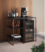 Aparador Adega Bourbon Cobre E Preto 80 Cm Complemente sua decoração com estilo e funcionalidadeO Aparador Adega Bourbon é um móvel curinga que se encaixa perfeitamente em qualquer estilo de decoração. Seja na sala de estar, na sala de jantar ou até mesmo em um corredor, ele é perfeito para criar um cantinho aconchegante. Seu amplo espaço de tampo e prateleiras permite acomodar objetos do dia a dia e itens decorativos, proporcionando organização e beleza ao ambiente. Com um design que combina estrutura em aço e prateleiras amadeiradas, o Aparador Adega Bourdon apresenta um visual industrial e moderno, conferindo um toque de sofisticação ao seu lar.Diferenciais:Material resistente: Aço carbono e MDP garantem durabilidade e robustez ao móvel.Pintura eletrostática: Acabamento de alta qualidade e fácil de limpar.Versatilidade: Pode suportar até 15 kg por prateleira, permitindo armazenar diversos objetos.Design elegante: O contraste entre o cobre e o preto confere um visual charmoso e contemporâneo ao ambiente.Mais sobre o Produto:O Aparador Adega Bourbon é ideal para quem busca aliar praticidade e estilo na decoração da casa. Suas prateleiras espaçosas são perfeitas para organizar copos, garrafas, livros, vasos e outros itens decorativos. Além disso, sua estrutura em aço carbono e MDP garante resistência e estabilidade, tornando-o uma escolha segura e elegante para o ambiente.Dicas de Uso:Na sala de estar: Utilize o Aparador Adega Bourbon para expor objetos decorativos, como porta-retratos, velas aromáticas e plantas, criando um ambiente acolhedor e sofisticado.Na sala de jantar: Organize taças, copos e garrafas de vinho nas prateleiras do aparador, facilitando o acesso durante as refeições e conferindo um toque charmoso à decoração.No corredor: Crie um cantinho de café aconchegante com o Aparador Adega Bourbon, disponibilizando xícaras, cafeteira e açucareiro para seus momentos de relaxamento.Ficha Técnica:Marca: AsturiasAltura: 75 cmComprimento: 80 cmProfundidade: 50 cmMaterial: Aço carbono e MDPPeso: 9000 gramasCategoria: AparadoresSuporta até 15 kg por prateleira