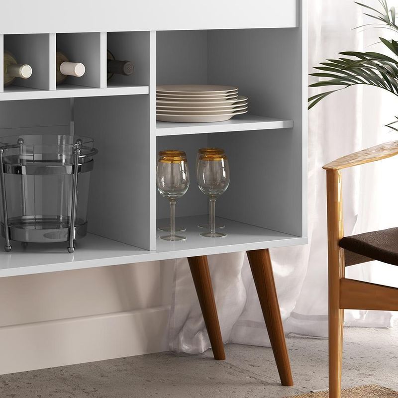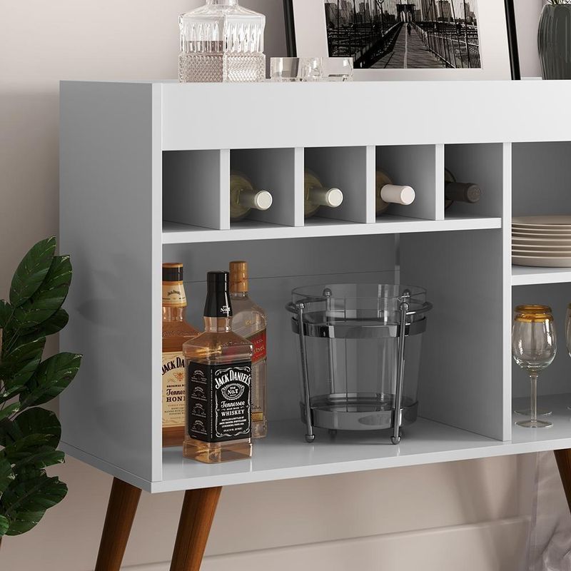 Aparador Adega Odin - Pés Palito Retrô E Mdp Branco - Ej Móveis BrancoO Aparador Adega Odin - Movelove é a escolha perfeita para quem busca design charmoso, funcionalidade e praticidade em um único móvel. Compacto e elegante, possui pés palito retrô e adega para 5 garrafas, tornando-o ideal para complementar diversos ambientes, como salas de estar, salas de jantar ou áreas de lazer.Características TécnicasDimensões:- Altura: 84 cm- Largura: 93 cm- Profundidade: 35 cmMateriais:- Estrutura: MDPDetalhes Estruturais:- 4 pés em madeira maciça (estilo palito retrô)- Adega para 5 garrafas- Tampo superior estilo bandejaAcabamento:- Pintura em UV e PUBenefícios e Funcionalidades- Estilo Compacto e Moderno: O design retrô dos pés palito, aliado ao tampo estilo bandeja, confere charme e originalidade ao ambiente.- Espaço para Adega: Capacidade para armazenar 5 garrafas, mantendo-as sempre à mão e organizadas.- Funcionalidade Versátil: Nicho adicional para decoração ou armazenamento de utensílios, livros, objetos pessoais, entre outros.- Durabilidade: A estrutura em MDP e os pés de madeira maciça garantem resistência e longa vida útil do móvel.Observações Importantes- Imagens meramente ilustrativas.- Não usar produtos abrasivos para limpeza; utilize apenas pano seco ou levemente umedecido.- Não expor diretamente ao sol, calor ou umidade excessiva.- Dimensões da caixa (): 38 cm x 95 cm x 12 cm (C x L x A).- Verifique a embalagem no momento do . Em caso de irregularidade, recuse a e nos contate imediatamente.Conteúdo da Embalagem- 1 Aparador Adega Odin - Movelove- 1 Manual de instruçõesAparador, Adega, Odin, Movelove, Pés Palito, Estilo Retrô, Bandeja Superior, Sala de Estar, Sala de Jantar, Decoração, Compacto, MDP, Madeira Maciça, Nicho, Armazenamento, Funcionalidade, Moderno, Resistência, Montagem, Móveis. Cor: Preto | Quantidade de caixas de embalagem: | Cor: Branco