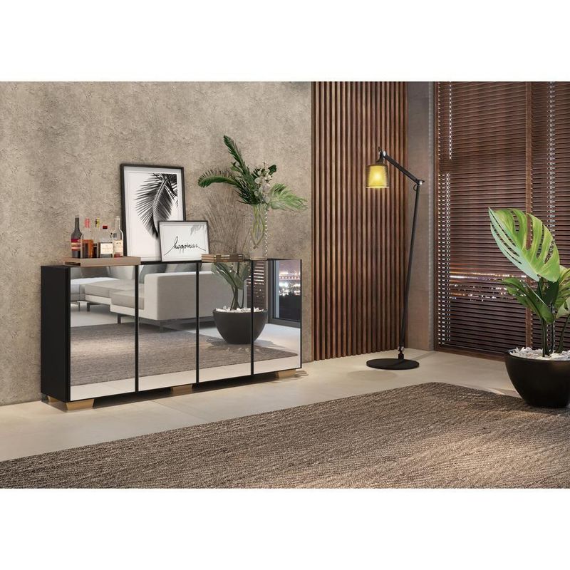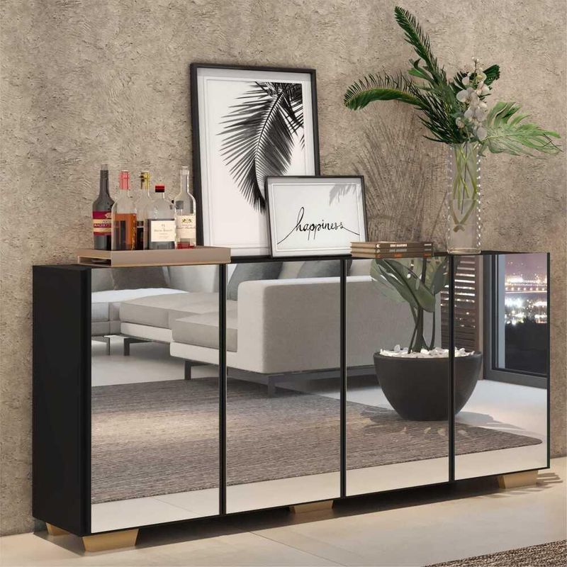Aparador Buffet 4 Portas com Espelho e Pés Preto/l