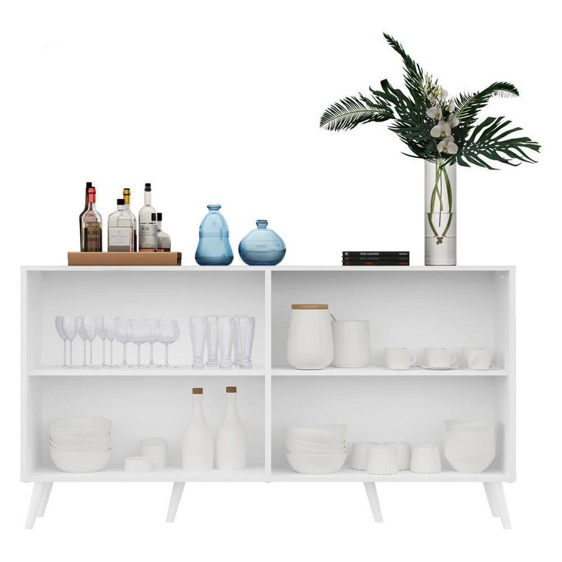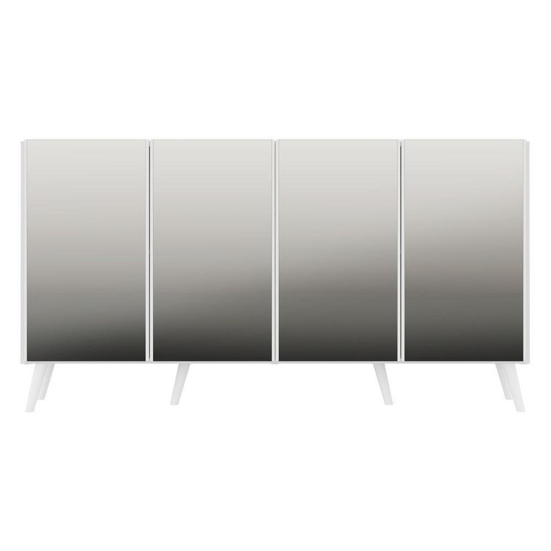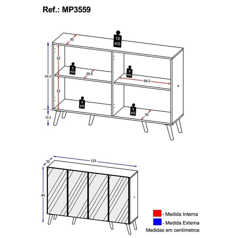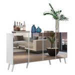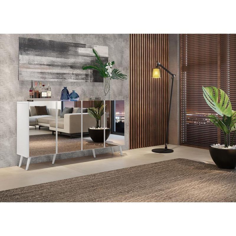 O Aparador Buffet 4 portas com Espelho e Pés Retrô Vegas Multimóveis é produzido em MDP, que garante maior durabilidade, facilidade na limpeza, além de um acabamento superior. Com 4 portas, possui acabamento acetinado (cerca de 20% de brilho) e um excelente espaço interno para organizar seus pertences (as prateleiras internas suportam 5 Kg cada e o tampo 10 Kg). Os pés retrô, em polipropileno, e os detalhes com espelhos nas portas dão um charme especial ao móvel deixando-o com um visual leve e permitindo você compor um ambiente com ar vintage e moderno ao mesmo tempo. Os espelhos são de vidro (o que evita que a imagem fique distorcida) e lapidados, ou seja, passam por um processo para que as bordas não fiquem cortantes, o que garante maior . Seu design minimalista, torna o móvel muito versátil, podendo ser utilizado de diversas maneiras e em qualquer ambiente. Conteúdo da Embalagem:1 (um) aparador1 (um) kit com 6 pés retrô1 (um) kit com 4 espelhosKit FerragemManual de MontagemDimensões do produto montado:Altura: 85cm | Largura: 123cm | Profundidade: 32cm*Você pode consultar as medidas detalhadas na imagem técnica do produto.*As cores do produto podem sofrer variações de tonalidade de acordo com as configurações do seu dispositivo.*Obrigatório fixar na parede.Imagem meramente ilustrativa. Decoração e eletros não acompanham o produto.O produto será entregue desmontado e não disponibilizamos o de montagem.