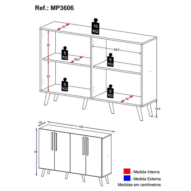 O Aparador Buffet 4 Portas com Pés Retrô Viena Multimóveis é produzido em MDP com acabamento acetinado (cerca de 20% de brilho), que garante maior durabilidade, facilidade na limpeza, além de um acabamento superior. Com 4 portas e puxadores em madeira, possui um excelente espaço interno para organizar seus pertences (as prateleiras internas suportam 5 Kg cada e o tampo 10 Kg). Os pés retrô, em polipropileno, dão um charme especial ao móvel deixando-o com um visual leve e permitindo você compor um ambiente com ar vintage e moderno ao mesmo tempo. Seu design minimalista, torna o móvel muito versátil, podendo ser utilizado de diversas maneiras e em qualquer ambiente.Conteúdo da Embalagem:1 (um) aparador1 (um) kit com 4 puxadores1 (um) kit com 6 pés retrôDimensões do produto montado:Altura: 85cm | Largura: 123cm | Profundidade: 32cm*Você pode consultar as medidas internas na imagem técnica do produto.*As cores do produto podem sofrer variações de tonalidade de acordo com as configurações do seu dispositivo.*Obrigatório fixar na parede.Imagem meramente ilustrativa. Decoração e eletros não acompanham o produto.O produto será entregue desmontado e não disponibilizamos o serviço de montagem.