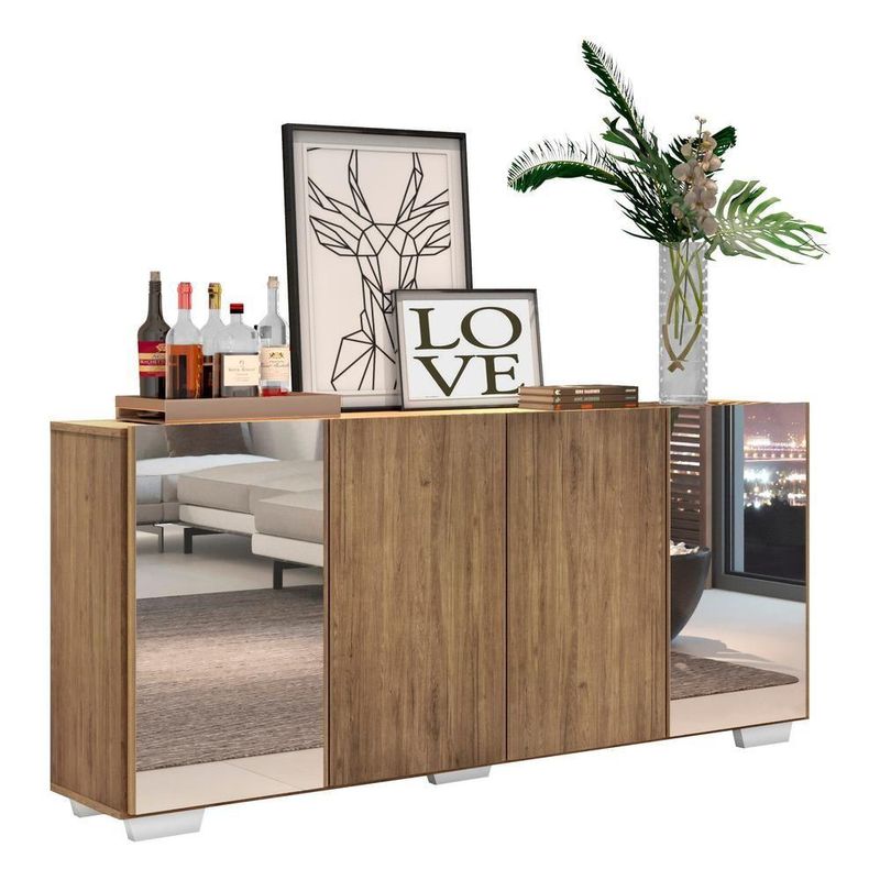 Aparador Buffet com Espelho e Pés Quadrados Rustic/branco