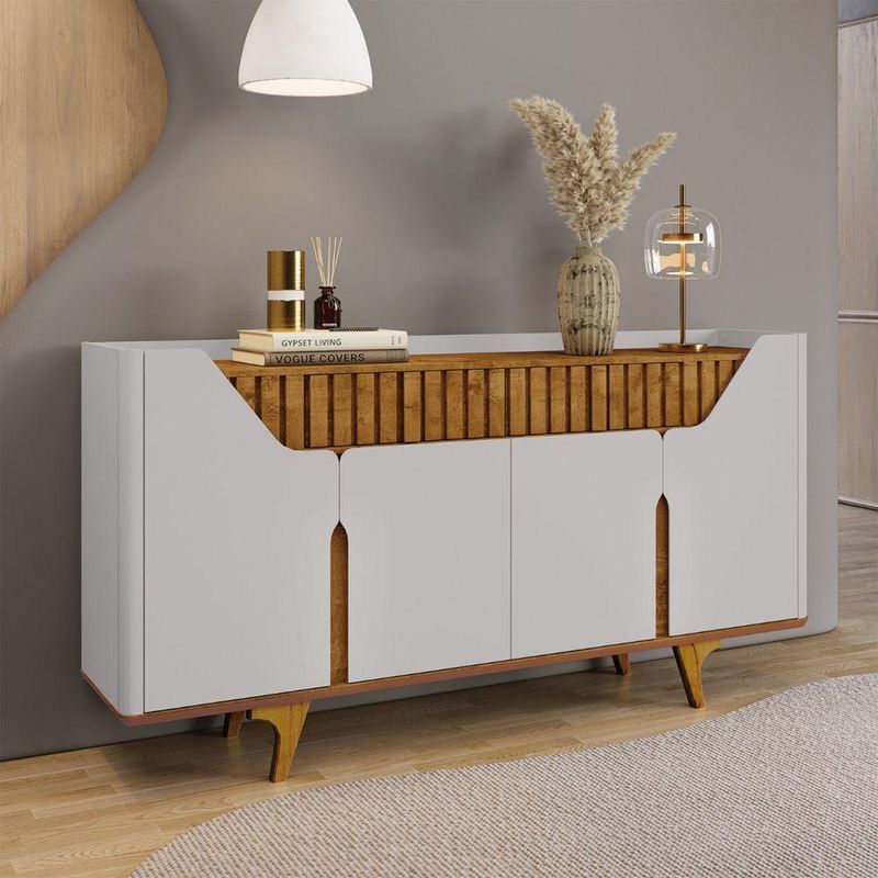 Aparador Buffet Danúbio Off-white Com Naturalle - BecharaO Aparador Buffet Denúbio é a escolha perfeita para quem busca funcionalidade aliada a um design sofisticado. Sua estrutura equilibrada une estética contemporânea e excelente aproveitamento de espaço, tornando-o ideal para salas de jantar, estar ou ambientes integrados.Na parte superior, o tampo amplo permite compor o ambiente com vasos, bandejas, arranjos, bebidas ou objetos decorativos. Já na área inferior, o móvel conta com portas bem distribuídas e nichos internos que garantem organização prática para utensílios, louças, toalhas, acessórios de mesa e itens que você deseja manter protegidos e sempre à mão.O visual clean, sem puxadores aparentes, reforça o estilo moderno do conjunto. A base elevada proporciona leveza visual, facilita a limpeza e valoriza o design do móvel, permitindo que ele se destaque sem pesar no ambiente.Dimensões:Altura: 93 cmLargura: 180 cmProfundidade: 38 cmObservações:- Visual moderno, limpo e fácil de combinar- Portas com abertura discreta e acabamento elegante- Nichos internos para organização de utensílios e objetos diversos- Tampo espaçoso para decoração ou uso funcional- Estrutura elevada que facilita a limpeza do ambiente- Ideal para salas de jantar, estar ou espaços integrados- Design pensado para unir praticidade e beleza no dia a dia