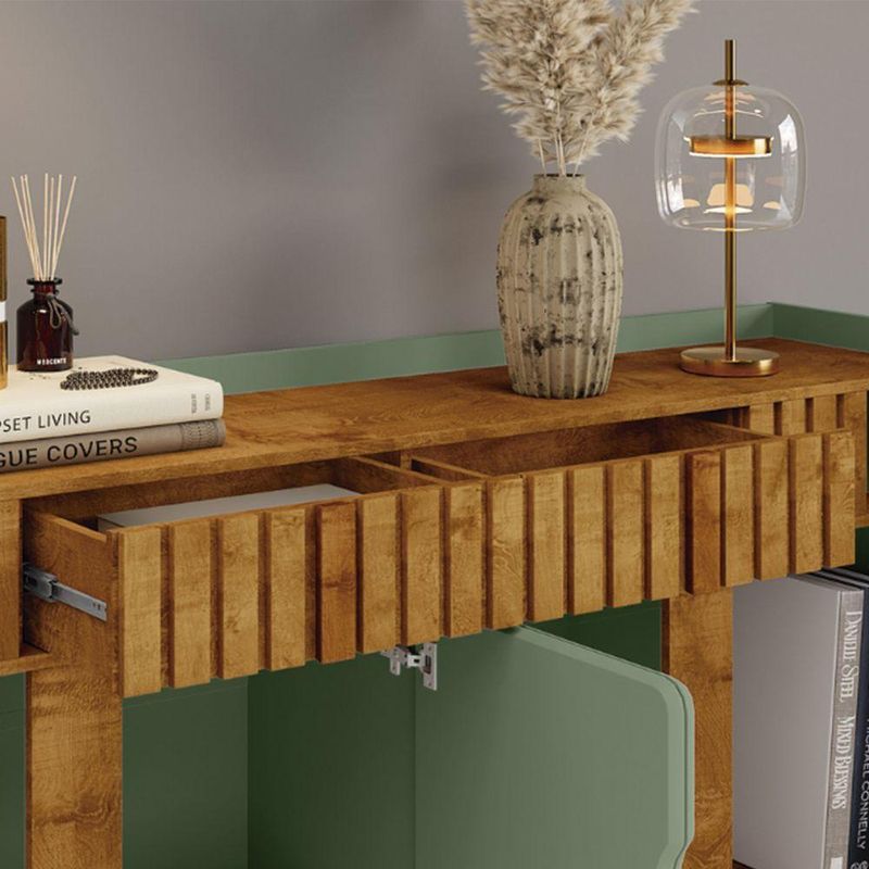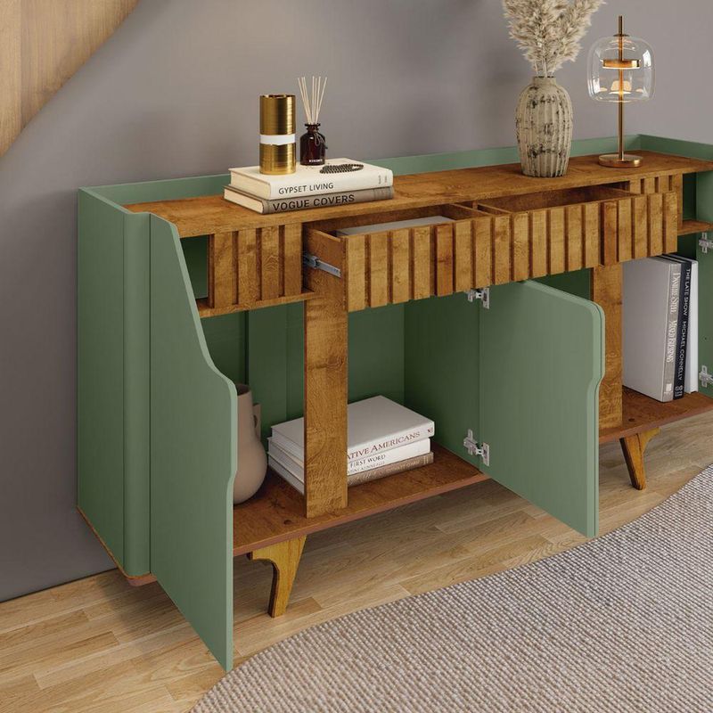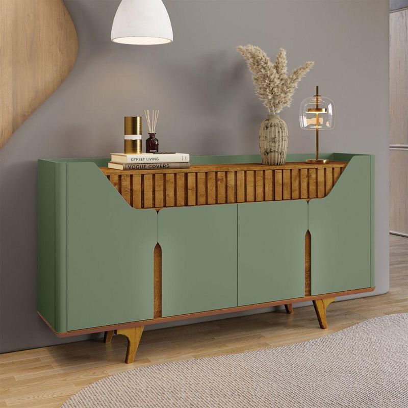 Aparador Buffet Danúbio Pistache Com Naturalle - BecharaO Aparador Buffet Denúbio é a escolha perfeita para quem busca funcionalidade aliada a um design sofisticado. Sua estrutura equilibrada une estética contemporânea e excelente aproveitamento de espaço, tornando-o ideal para salas de jantar, estar ou ambientes integrados.Na parte superior, o tampo amplo permite compor o ambiente com vasos, bandejas, arranjos, bebidas ou objetos decorativos. Já na área inferior, o móvel conta com portas bem distribuídas e nichos internos que garantem organização prática para utensílios, louças, toalhas, acessórios de mesa e itens que você deseja manter protegidos e sempre à mão.O visual clean, sem puxadores aparentes, reforça o estilo moderno do conjunto. A base elevada proporciona leveza visual, facilita a limpeza e valoriza o design do móvel, permitindo que ele se destaque sem pesar no ambiente.Dimensões:Altura: 93 cmLargura: 180 cmProfundidade: 38 cmObservações:- Visual moderno, limpo e fácil de combinar- Portas com abertura discreta e acabamento elegante- Nichos internos para organização de utensílios e objetos diversos- Tampo espaçoso para decoração ou uso funcional- Estrutura elevada que facilita a limpeza do ambiente- Ideal para salas de jantar, estar ou espaços integrados- Design pensado para unir praticidade e beleza no dia a dia